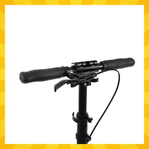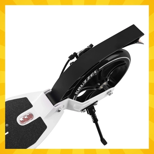 O bezpečné zastavenie sa stará ručná kotúčová brzda doplnená o nožnú brzdu v zadnom blatníku. 4-stupňová regulácia výšky riadidiel zaručí pohodlný postoj deťom aj dospelým. Hliníková konštrukcia je ľahká a odolná, rýchle skladanie a praktický stojan uľahčia parkovanie aj prepravu v MHD.