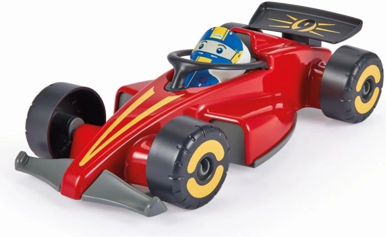 Model je k dispozícii v dvoch farebných prevedeniach (červená a oranžová) s veselým vodičom v kokpite. Ideálne ako prvé pretekárske auto do zbierky – ľahko sa ovláda, je ľahké a odolné proti nárazom.