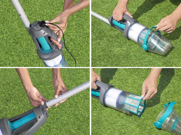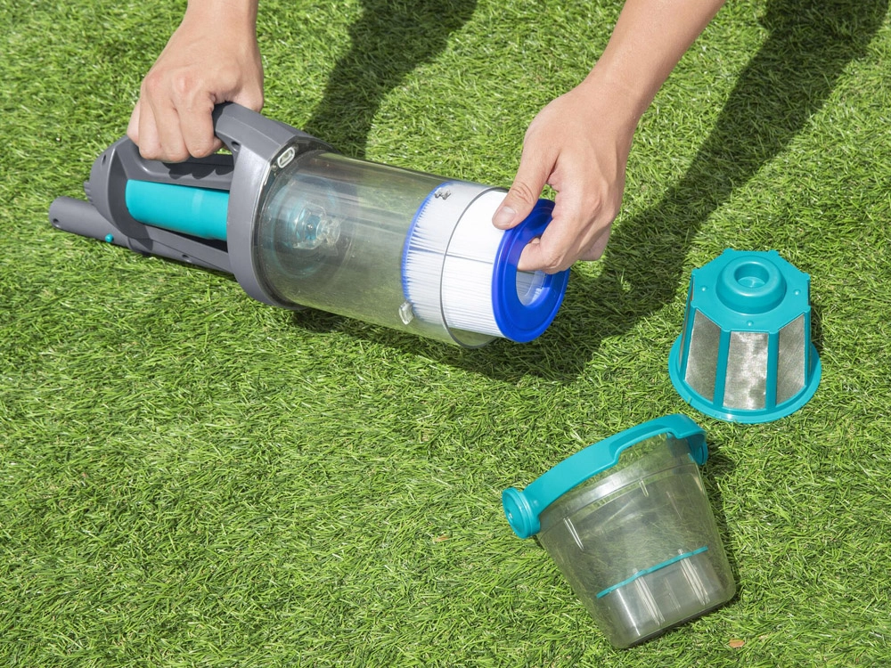 Udržujte svoj bazén krištáľovo čistý s ručným, bezdrôtovým vysávačom BESTWAY AquaGrip. Ponúka až 90 minút prevádzky, priehľadnú nádobu 2 l, dvojitú filtráciu (nerezové sitko + vložka typu VI) a 2 vymeniteľné hlavice na dno, steny aj rohy. Vďaka ľahkému tyčovému systému (2 m), LED osvetleniu a ochrane proti chodu nasucho je čistenie rýchle, bezpečné a efektívne pre nadzemné aj zapustené bazény.