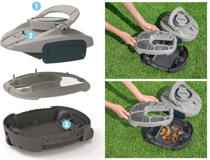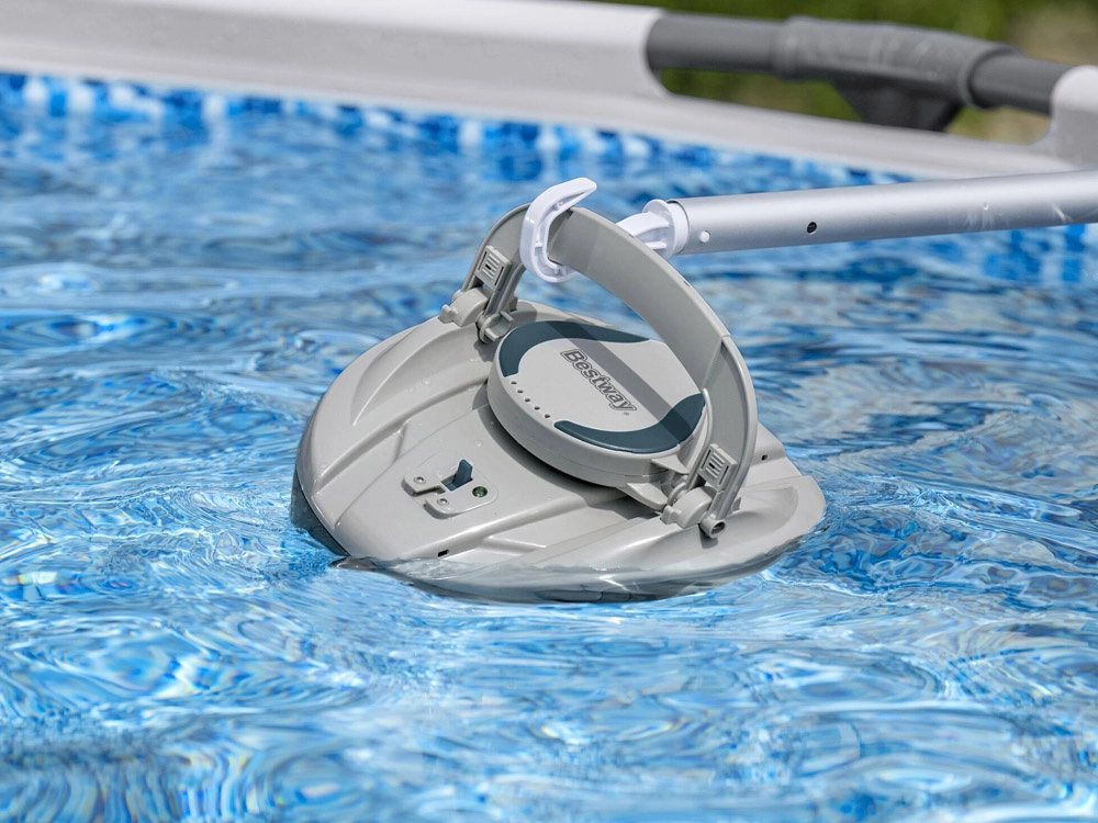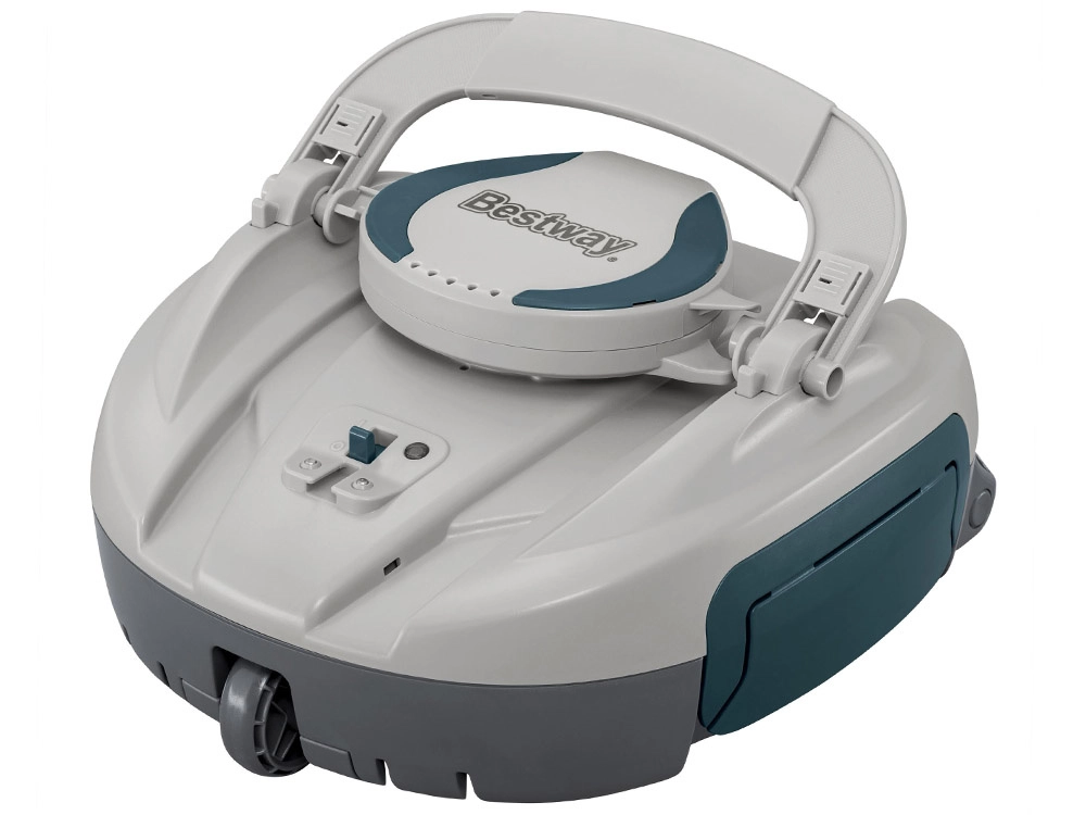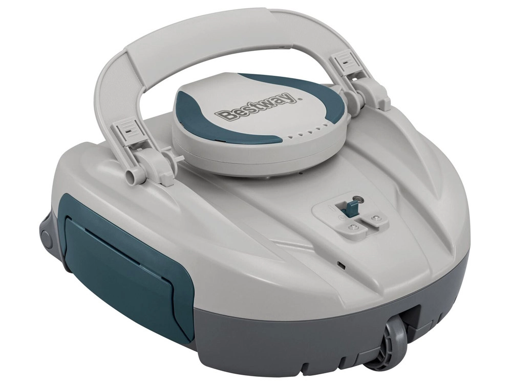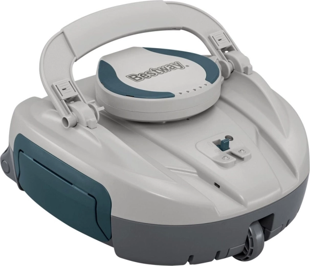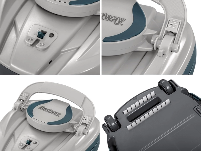 Na jedno nabitie zvládne vysávač až 60 minút upratovania, plné nabitie trvá približne 3,5–6 hodín. Vďaka praktickým transportným úchytom je manipulácia jednoduchá a bezpečná. Zariadenie je určené pre bazény s plochým dnom (nevhodné pre oceľové steny).