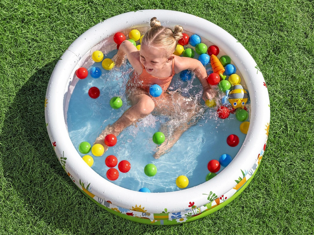 Užite si hranie po celý rok – doma s loptičkami alebo vonku s vodou. Plytký objem je ideálny pre prvé vodné radovánky a bezpečné osvieženie.