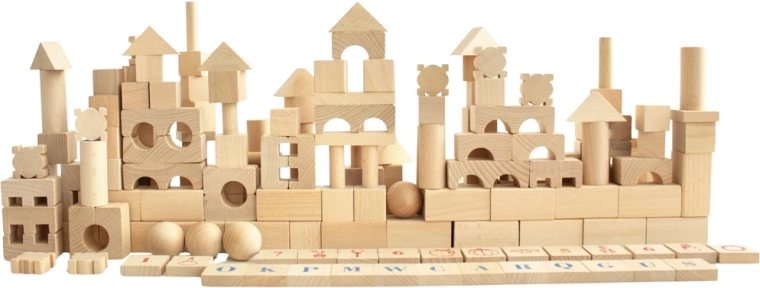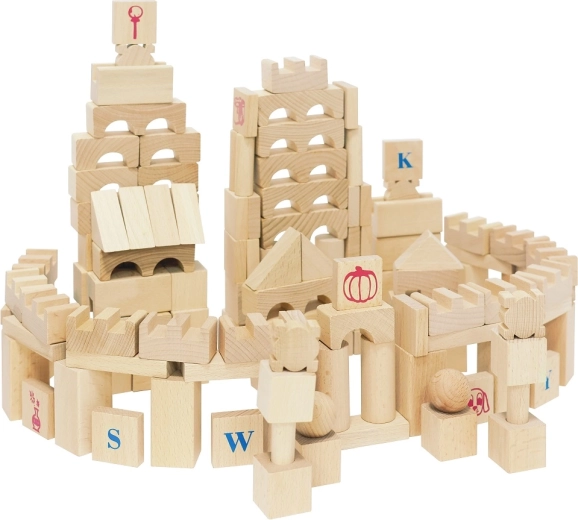Objavte nadčasovú zábavu s veľkou sadou prírodných drevených kociek. S 220 rôznorodými tvarmi deti ľahko postavia hrady, veže, mosty aj celé mestá. Hladký povrch a kvalitné opracovanie zaručujú bezpečnú hru, zatiaľ čo písmená, čísla a symboly na vybraných dielikoch podporujú prirodzené učenie formou hry.