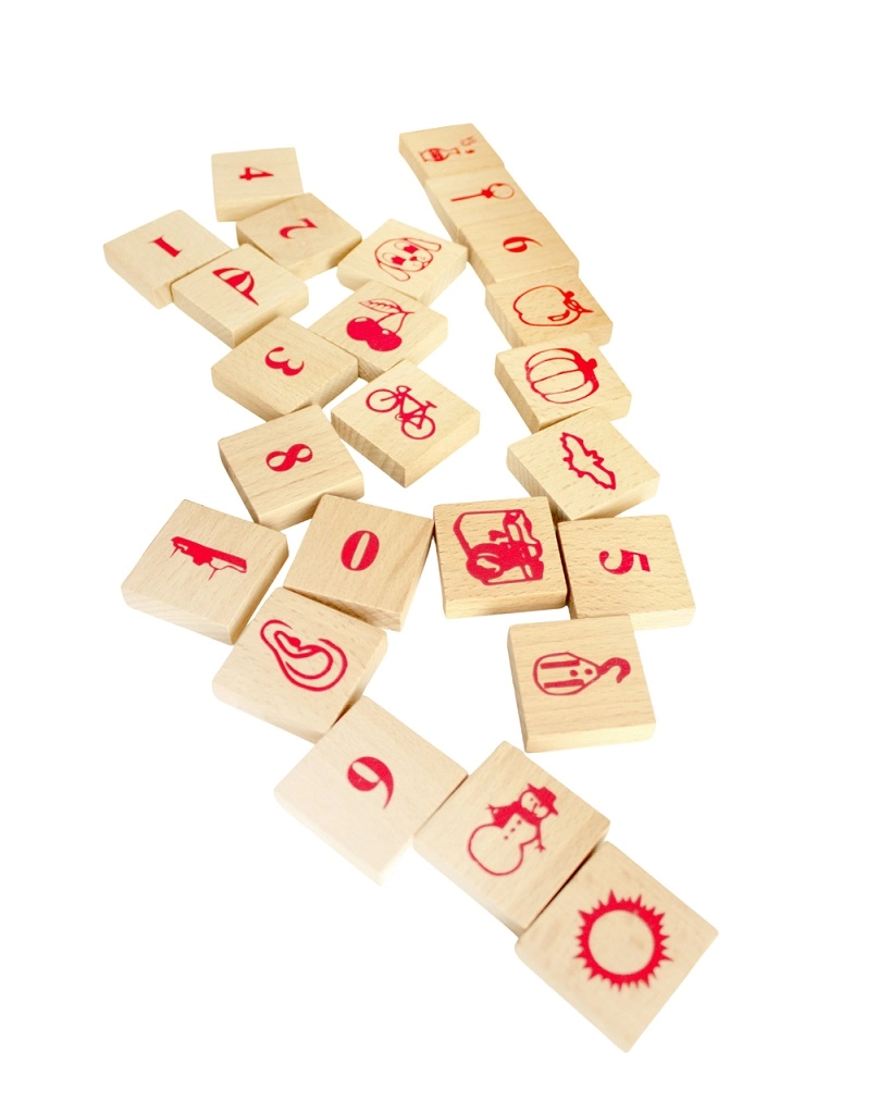 Vybrané dieliky s potlačou podporujú spoznávanie abecedy, čísel a jednoduchých ikon – skvelé pre prvé počítanie a skladanie slov.
