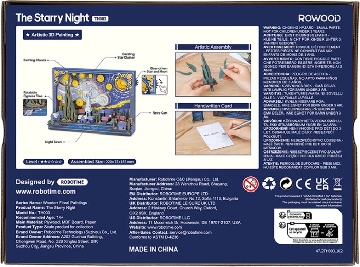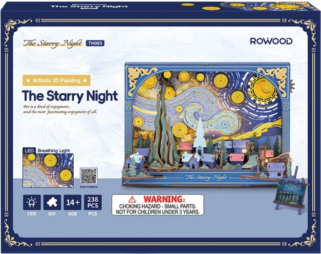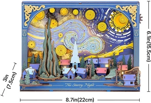 Objavte čaro slávneho motívu s jedinečnou 3D skladačkou RoboTime Hviezdna noc, ktorá sa po zostavení premení na štýlovú dekoráciu s jemným LED podsvietením. Vďaka 238 dielikom, jednoduchému zostaveniu bez lepidla a vymeniteľnému pozadiu vytvoríte pôsobivú scénu s pohyblivými detailmi – hviezdami, mesiacom, cyprusom aj kolesom voza. Ideálne ako nočná lampička, darček aj dizajnová ozdoba interiéru.