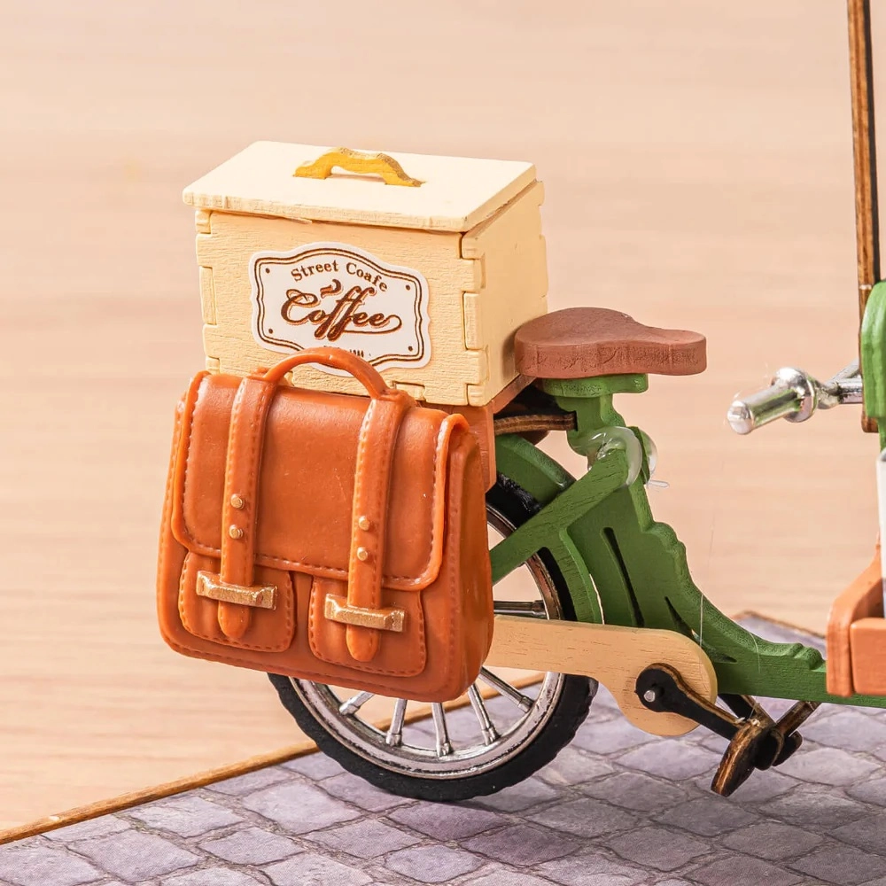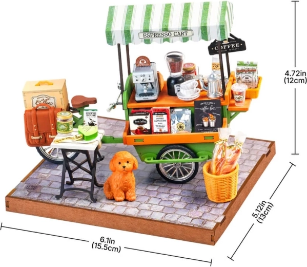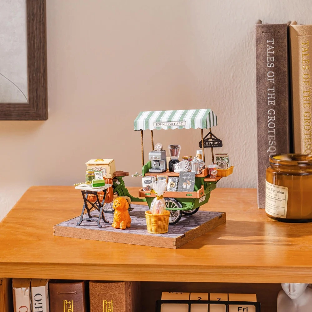 Vôňa čerstvej kávy a šarm pouličných kaviarní – to všetko v elegantnej miniatúre. Kávový vozík inšpirovaný európskou kaviarenskou scénou nadchne milovníkov miniatúr aj kávy. Vďaka starostlivo spracovaným detailom (kávovar, šálky, sirupy, bagety, stolík, psík) pôsobí model realisticky a ozvláštni každú vitrínu či pracovný kút.