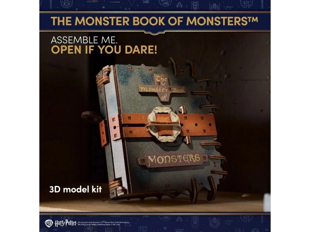 Objavte čarovný model pre fanúšikov HARRY POTTER – drevenú 3D skladačku UGEARS inšpirovanú knihou Monster Book of Monsters. Po zostavení sa kniha skutočne hýbe: pomocou ťažného lanká sa rozbehne po hladkom povrchu, otvára a zatvára „zuby“ a oči vyskočia pri aktivácii mechanizmu. Diely sú laserovo presne vyrezané a skladajú sa bez lepidla, takže získate autentickú, pohyblivú dekoráciu aj chytrú technickú hračku podporujúcu logické myslenie.