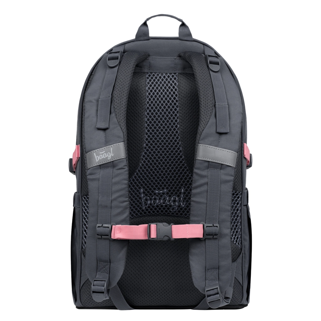Školský batoh BAAGL Core Logo v ružovej farbe je navrhnutý pre pohodlné a zdravé nosenie školských potrieb. Vďaka ergonomickému dizajnu, nastaviteľným ramenným popruhom a anatomicky tvarovanému chrbtu s ventiláciou zabezpečuje rovnomerné rozloženie záťaže aj pri každodennom používaní. Nízka hmotnosť 900 g a objem 25 l z neho robia ideálnu voľbu pre žiakov od 3. triedy.