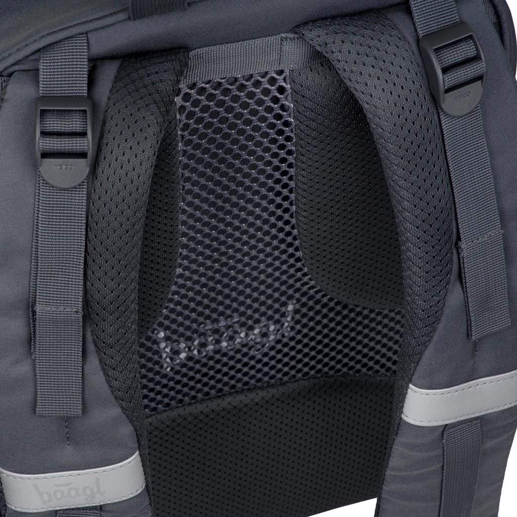 Ľahký a ergonomický školský batoh BAAGL Core Logo pre deti od 3. triedy ponúka objem 25 l, iba 900 g, anatomicky tvarovaný chrbát s odvetrávaním a polstrované vrecko na 15" notebook. Vyrobený z recyklovaného vodoodolného materiálu s certifikáciou GRS, má spoľahlivé zipsy YKK, reflexné prvky a praktickú organizáciu do troch komôr.