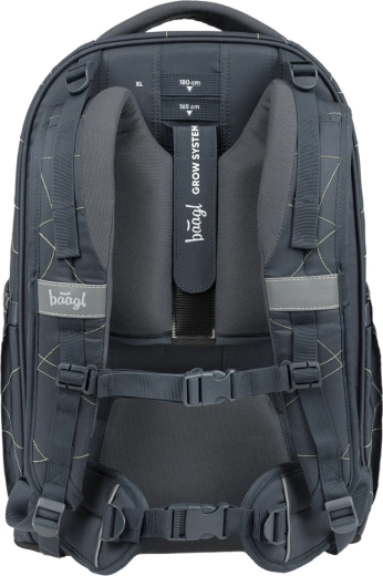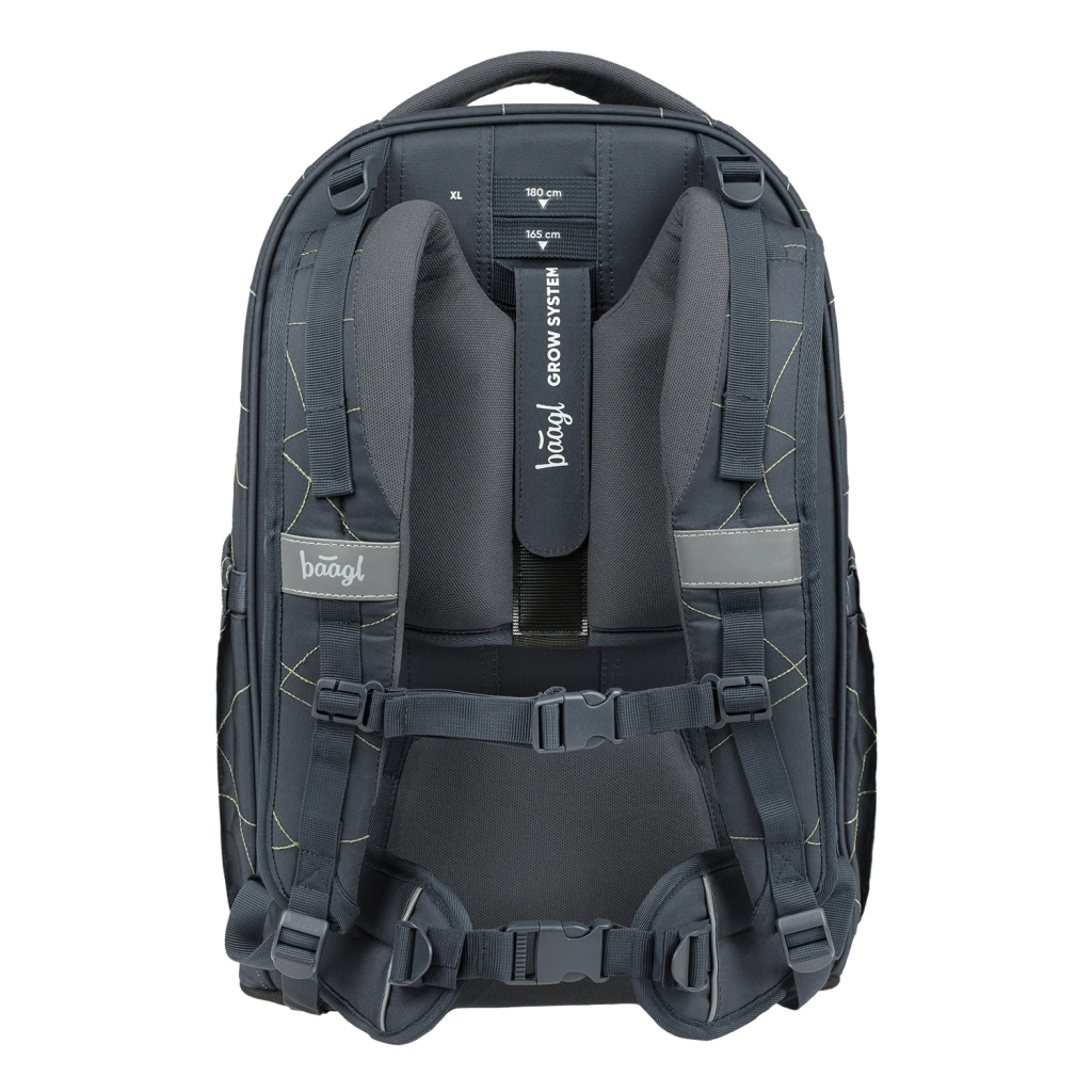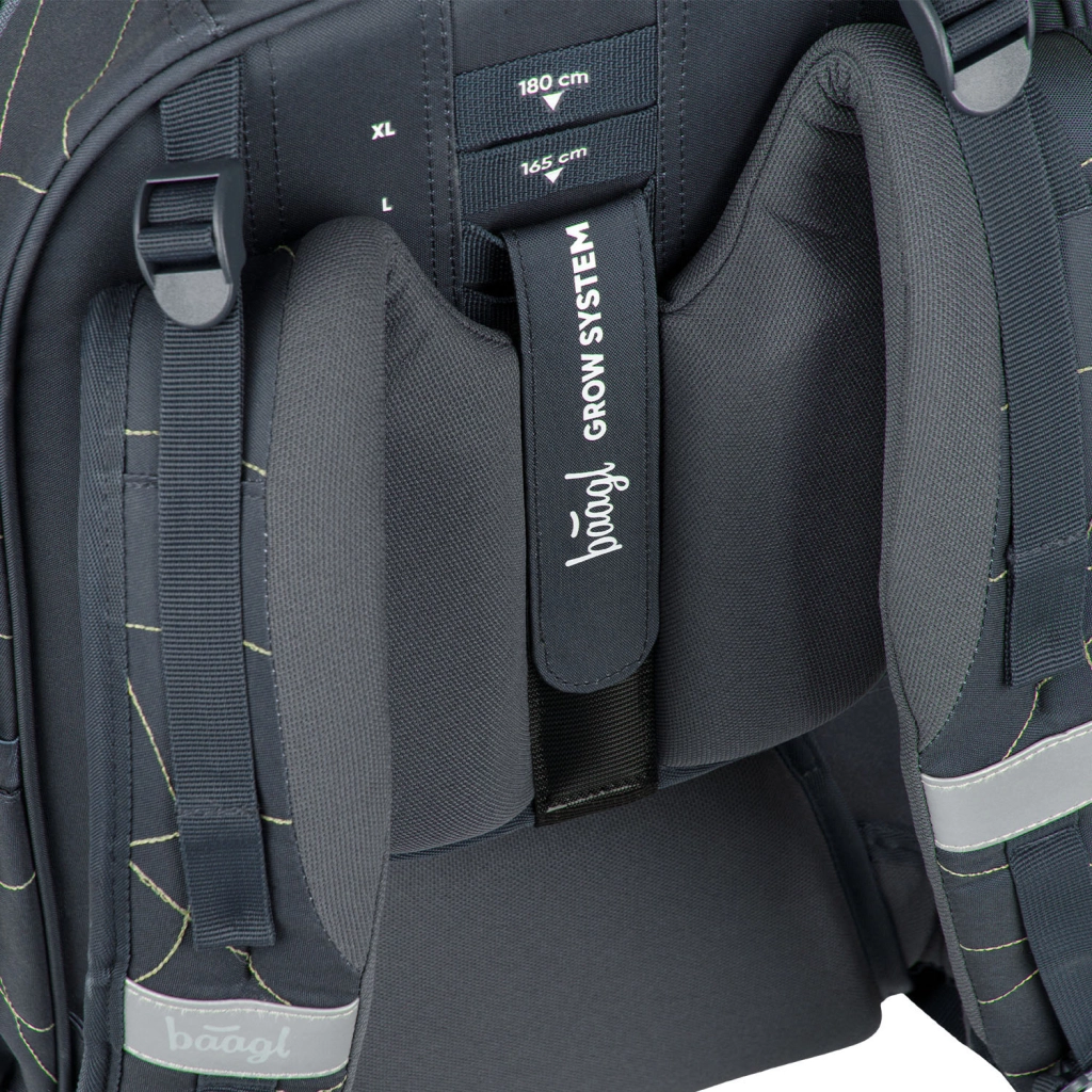 BAAGL Skate Max Wave GRS je premyslený batoh pre žiakov a študentov vysokých 135–185 cm. Vďaka posuvnému chrbtovému systému pohodlne rastie s dieťaťom až v štyroch veľkostiach. Konštrukcia s EVA výstužou výborne drží tvar, odnímateľný bedrový pás zvyšuje stabilitu a ergonomicky tvarované popruhy s jemnou sieťovinou chránia oblasť krku.
