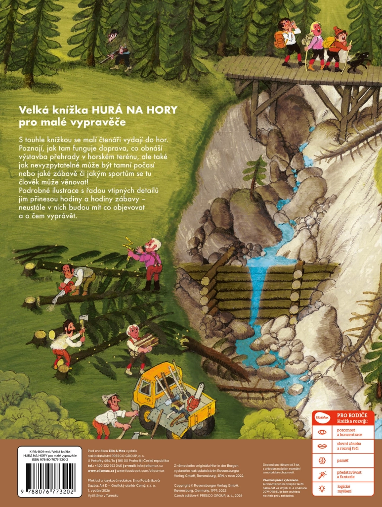 Vydajte sa s deťmi na dobrodružnú výpravu do hôr. Táto veľkoformátová kniha s bohatými a podrobnými ilustráciami predstavuje, ako to v horách funguje – od každodenného života a práce miestnych až po turistiku, lyžovanie a ďalšie aktivity, ktoré si užijú návštevníci. Vďaka množstvu zábavných detailov si deti budú stále nachádzať nové veci na objavovanie a rozprávanie.