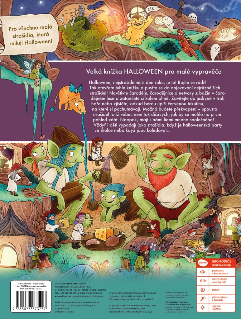 Halloween je tu! Otvorte knihu a vydajte sa s deťmi na výpravu do rozprávkových svetov plných čarovných postáv. Čaká vás návšteva u čarodejníc, tajuplná jaskyňa v trollej hore alebo stretnutie s netvormi z močiarov. A možno zistíte, že aj upíri majú svoje malé tajomstvá a nie sú takí hroziví, ako by sa mohlo zdať.