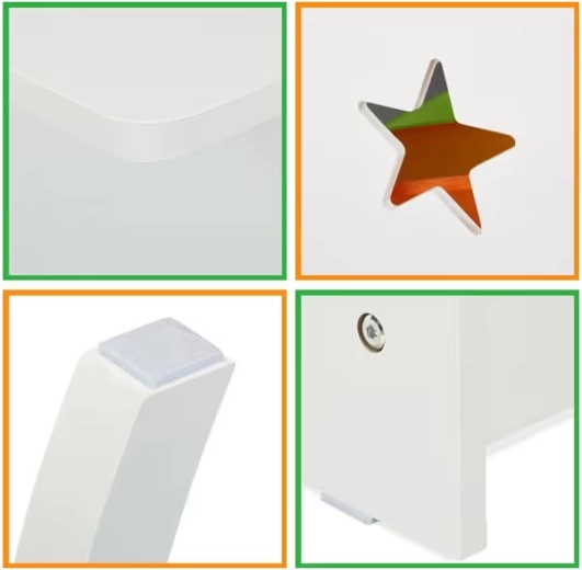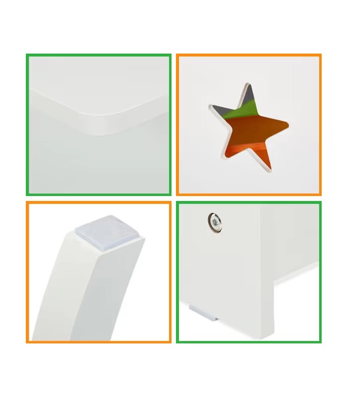 Pevná MDF, hladký povrch a zaoblené hrany zabezpečujú stabilitu a bezpečie pri každodennom používaní v detskej izbe.