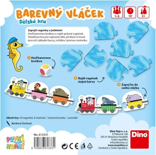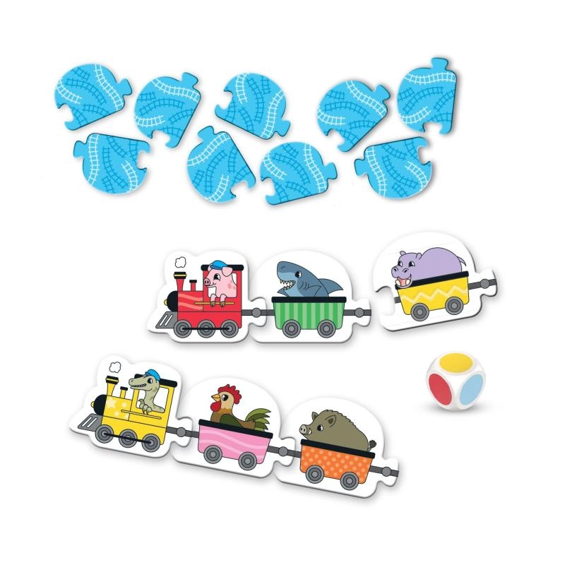 Zapojte vagóniky a vyrazte na cestu zábavy! Farebný vláčik je jednoduchá náučná hra pre deti od 2 rokov, ktorá rozvíja rozpoznávanie farieb, zoznamuje so zvieratkami a podporuje jemnú motoriku. Hoďte farebnou kockou a nájdite správny vagónik – ideálne pre 1–6 hráčov aj na prvé spoločné hranie.