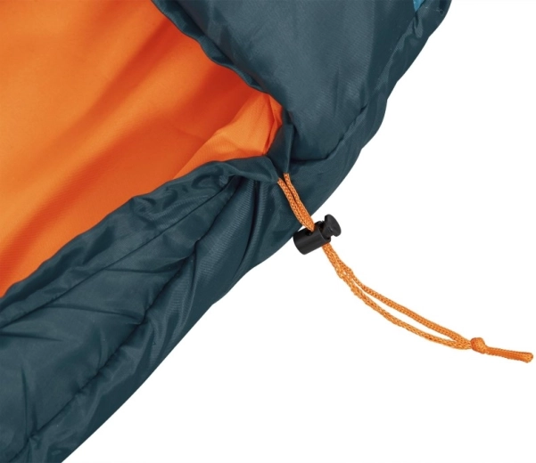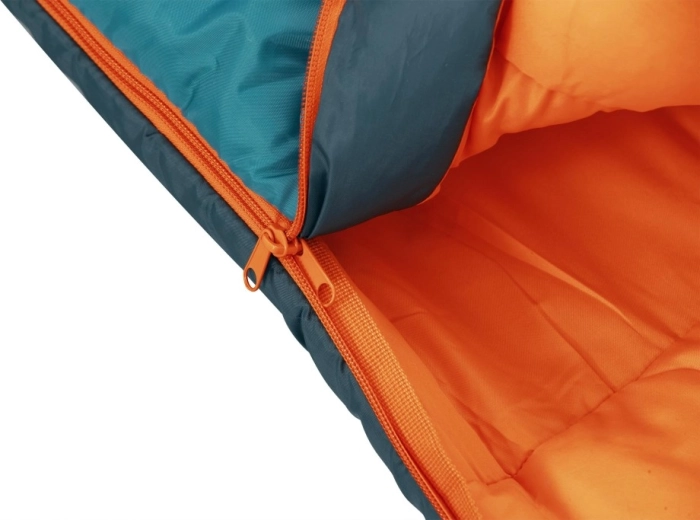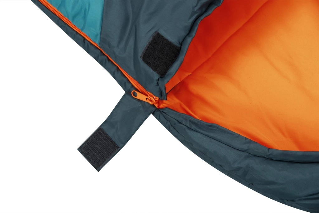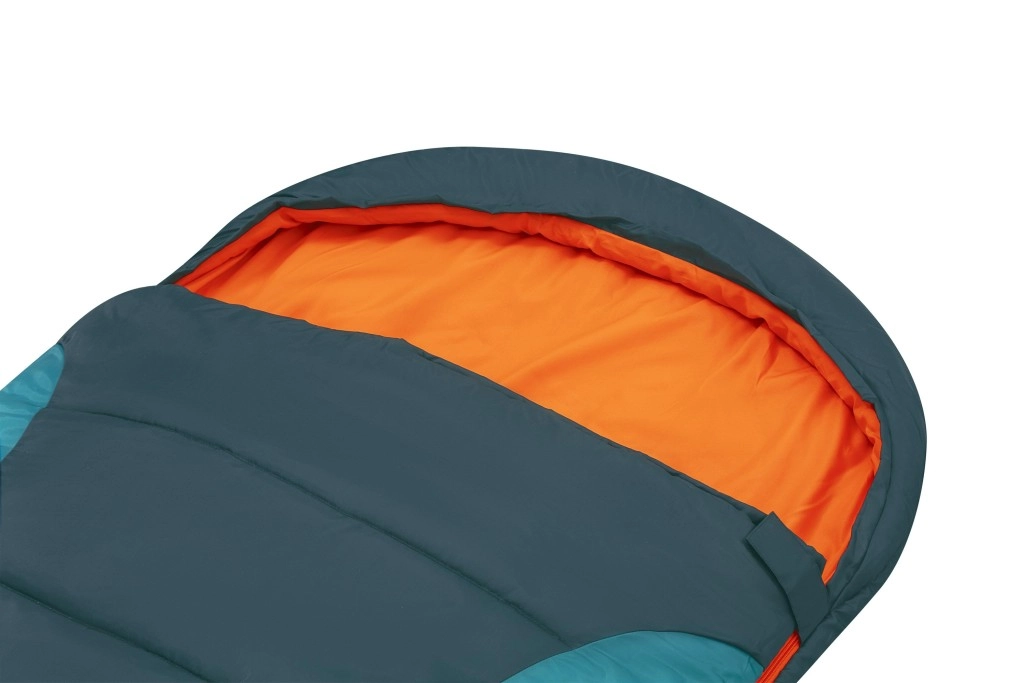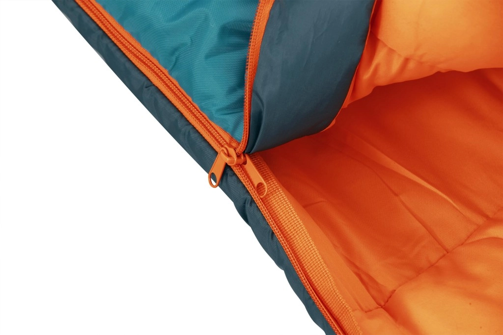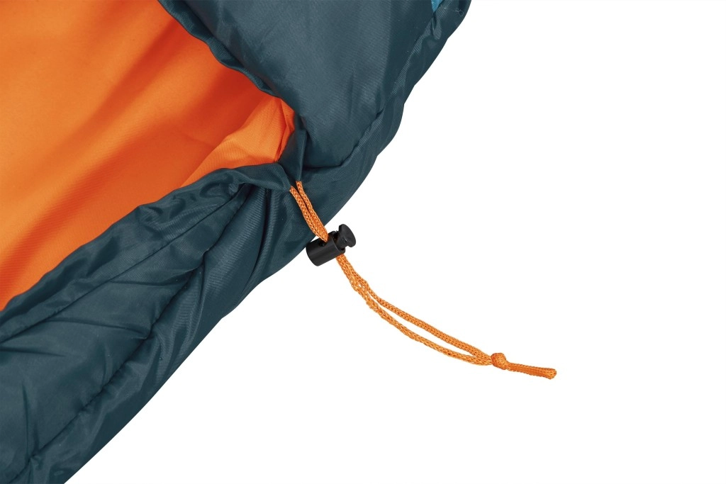 Obojstranný zips po celej dĺžke s izolačnou légou a ramennou chlopňou chráni proti prievanu, zatiaľ čo sťahovateľná kapucňa udrží teplo pri hlave počas chladných nocí. Odolný vonkajší 210T recyklovaný polyester a jemné vnútorné ponžé 190T príjemne hrejú a dobre dýchajú. Vďaka kompresnému vaku sa spacák ľahko balí a šetrí miesto v batohu (celková hmotnosť cca 1,4 kg).