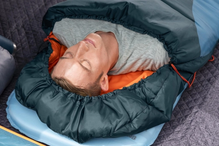 Jednovrstvová výplň z recyklovaného polyesteru 280 g/m² a mumiový tvar udržia teplo tam, kde ho potrebujete. Komfort 1–6 °C, extrém do -13 °C.