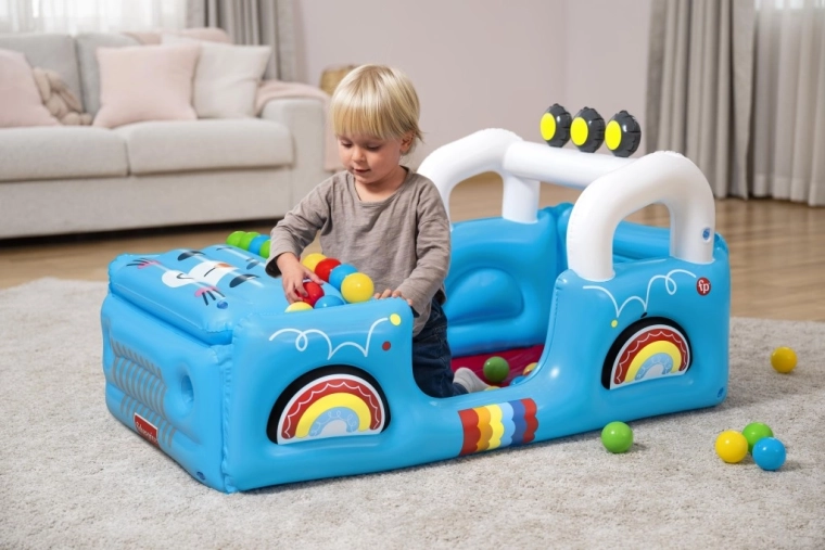 - Bezpečný a mäkký priestor pre batoliatá vďaka nafukovacím stenám.