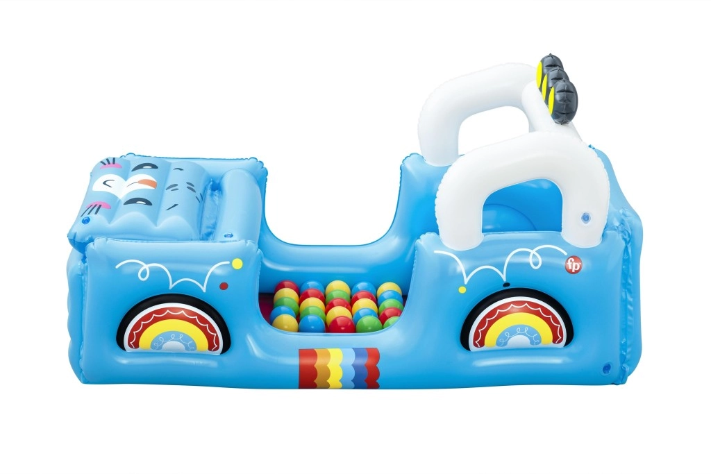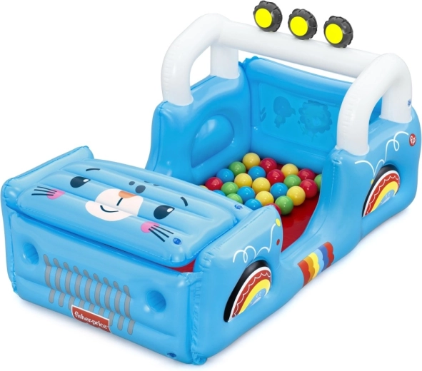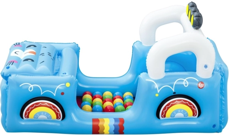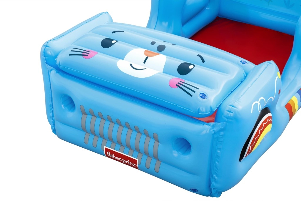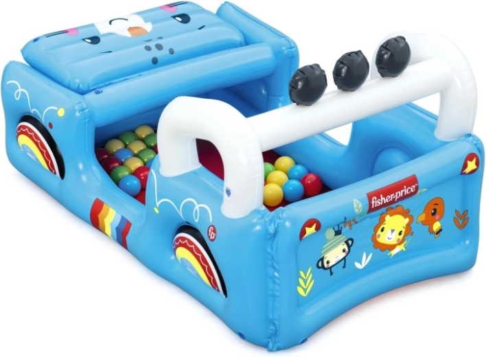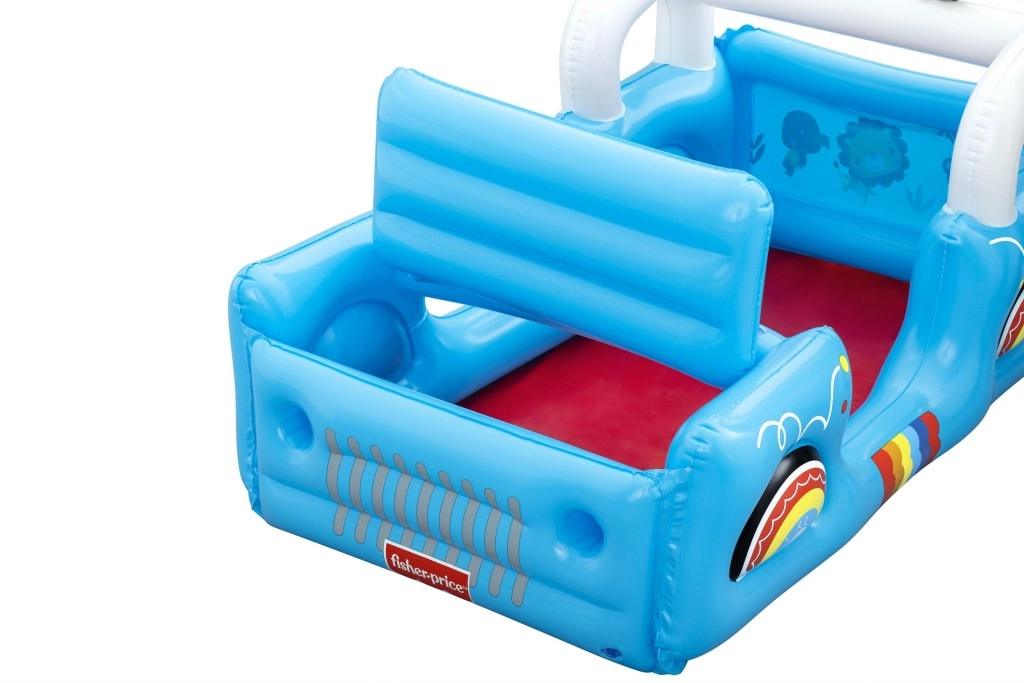 Zábavné nafukovacie hracie auto FISHER-PRICE v štýle safari premení každú izbu aj záhradu na bezpečný kút plný radosti. Ponúka mäkké, polstrované steny, priestranný bazénik s loptičkami a praktickú otváraciu kapotu pre ľahký prístup. Súčasťou je 25 farebných loptičiek, ktoré rozvíjajú jemnú motoriku a koordináciu oko–ruka. Odolný materiál, bezpečnostné ventily a záplata na opravy zaručujú dlhú životnosť.
