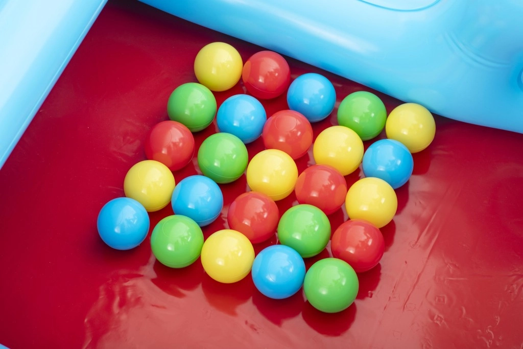 Súčasťou je 25 loptičiek v žiarivých farbách, ktoré rozvíjajú jemnú motoriku, koordináciu oko–ruka aj spoločnú hru s kamarátmi.