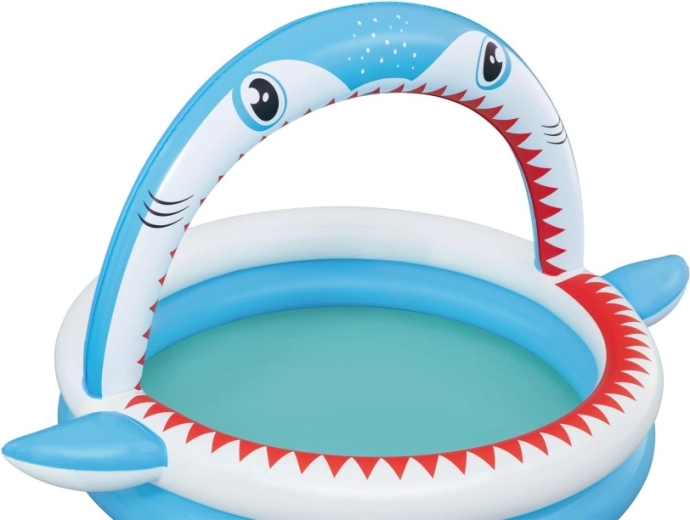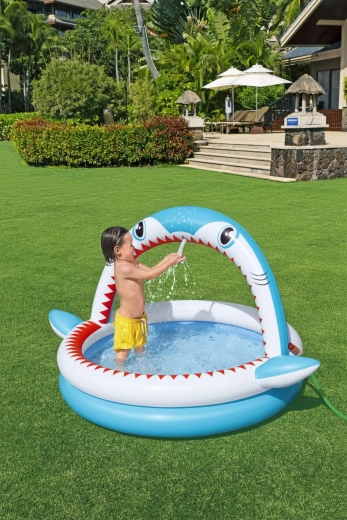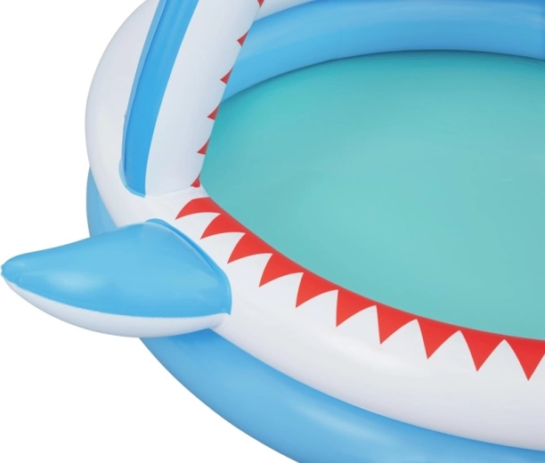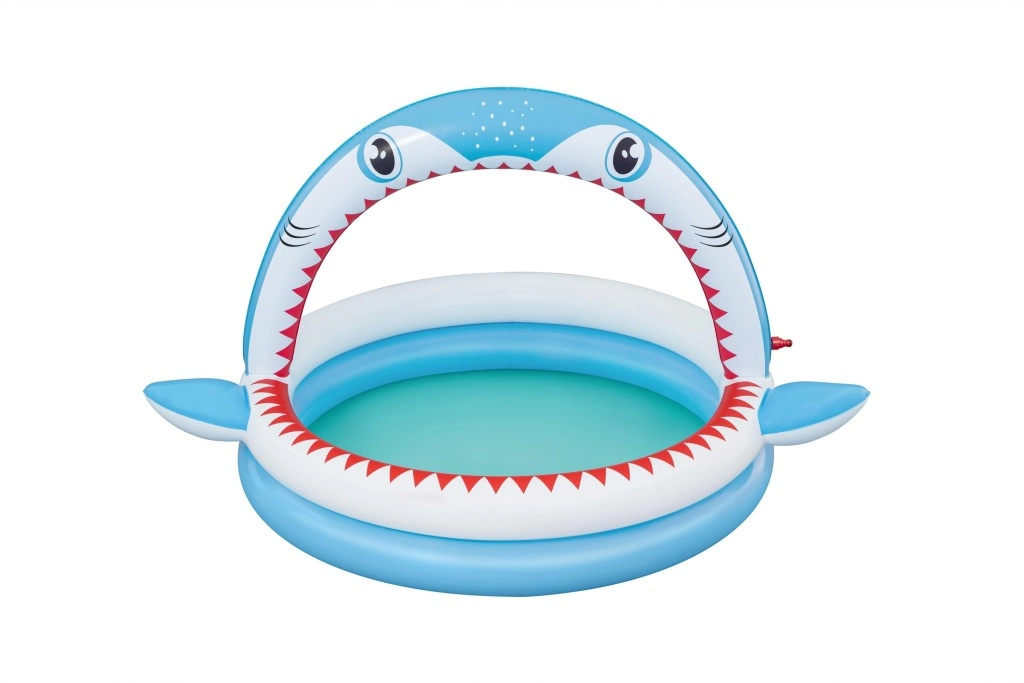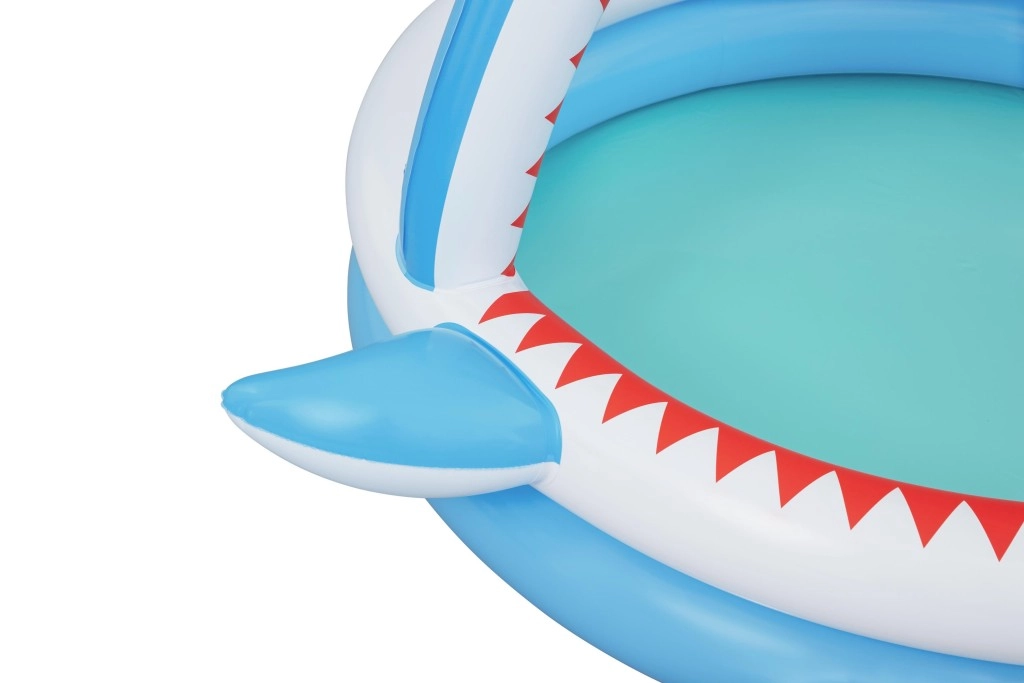 Zábavný nafukovací bazénik v tvare žraloka s integrovanou sprchou na osvieženie v horúcich dňoch. Ponúka priestranné rozmery 163 × 127 × 92 cm, mäkké nafukovacie steny a odolný PVC materiál. Ideálny pre deti od 2 rokov, ľahko sa nafukuje, pripojí k záhradnej hadici a behom chvíľky je pripravený na vodné radovánky.