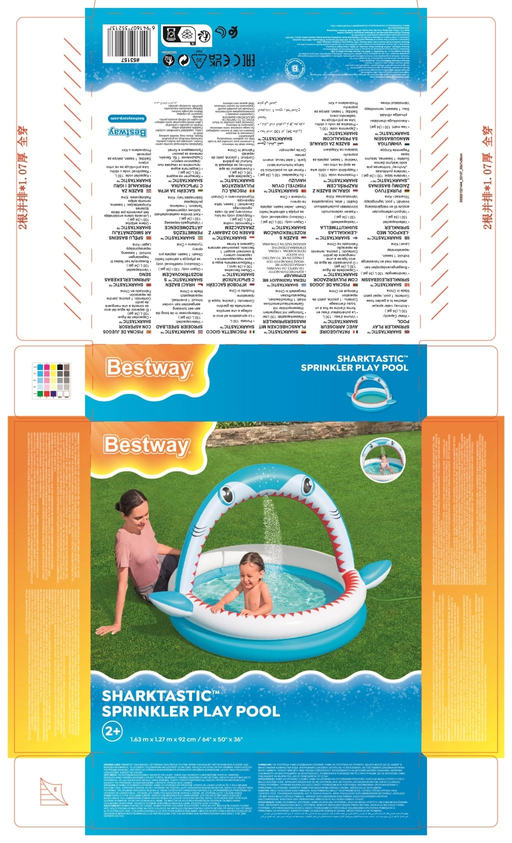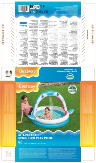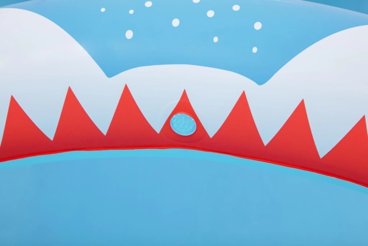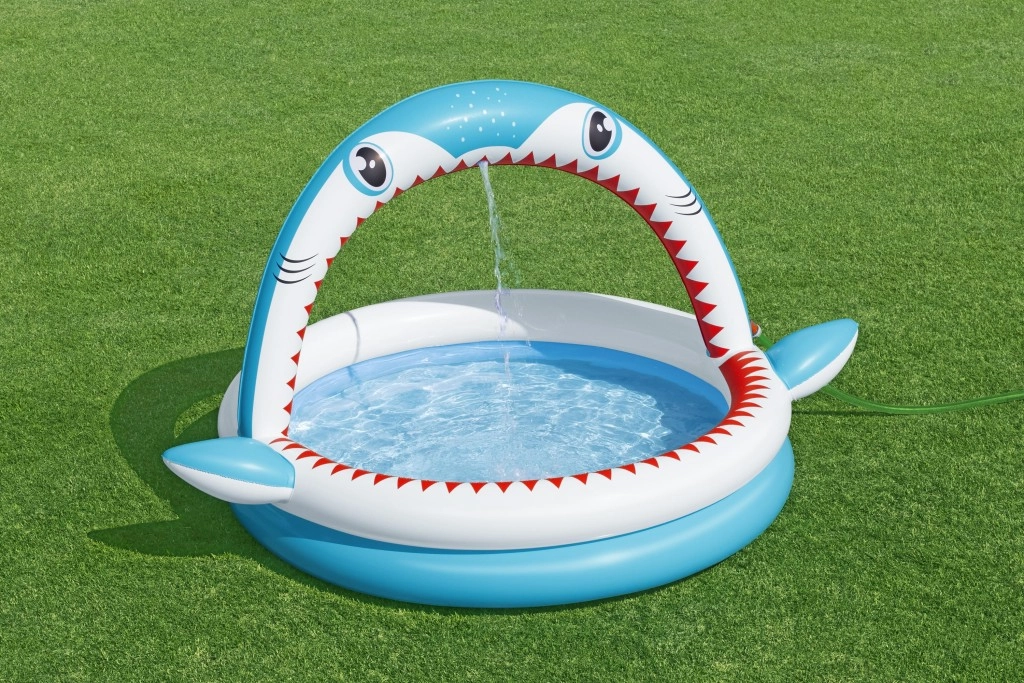Premeňte leto na nezabudnuteľnú zábavu s detským bazénikom Sharktastic! Veselý dizajn v tvare žraloka s červenými „zubami“ a bočnými plutvami nadchne každého malého plavca. Oblúková tlama funguje ako sprchový oblúk – stačí pripojiť záhradnú hadicu a jemná vodná fontána sa postará o príjemné osvieženie.