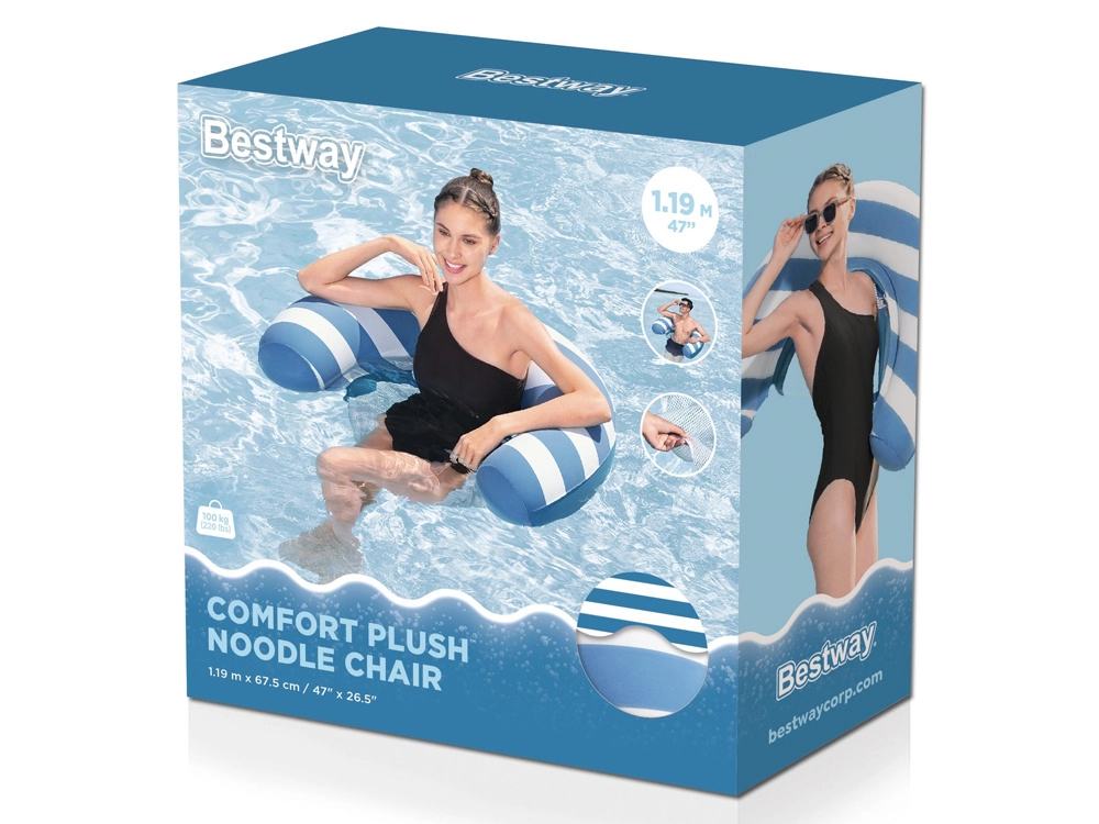 Užite si letný relax na maximum. Vodné kreslo BESTWAY Comfort Plush kombinuje mäkký, zamatový povrch s chladivým mesh sedadlom, ktoré príjemne ochladzuje telo pri odpočinku na hladine. Vďaka efektu zmeny farby získa plavák po namočení atraktívnejší, sýtejší odtieň.