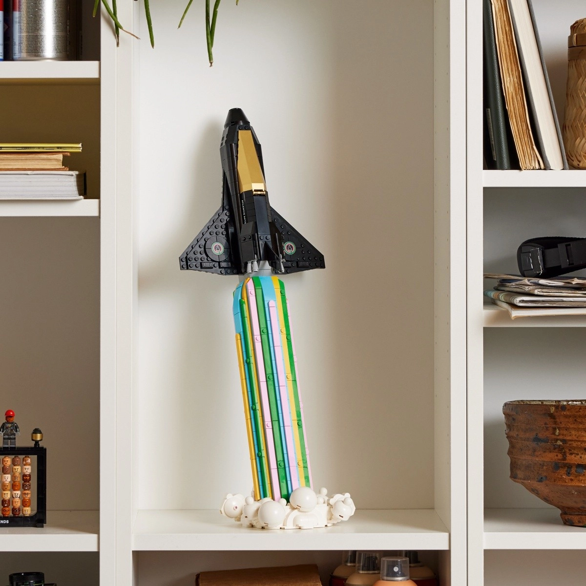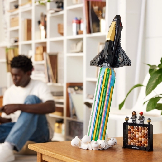 Postavte si ohromujúci raketoplán mieriaci ku hviezdam a vneste do svojho domova porciu inšpirácie a radosti. Tento zberateľský model LEGO Icons zachytáva moment štartu na pestrofarebnom oblaku plameňov a dymu, doplnený o exkluzívne minifigúrky PHARRELLA a HELEN WILLIAMS.
