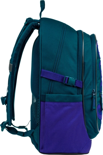 Recyklovaný materiál s certifikáciou GRS, spoľahlivé zipsy YKK, reflexné prvky a termovrecko na desiatu robia z batoha odolného a praktického parťáka do školy.