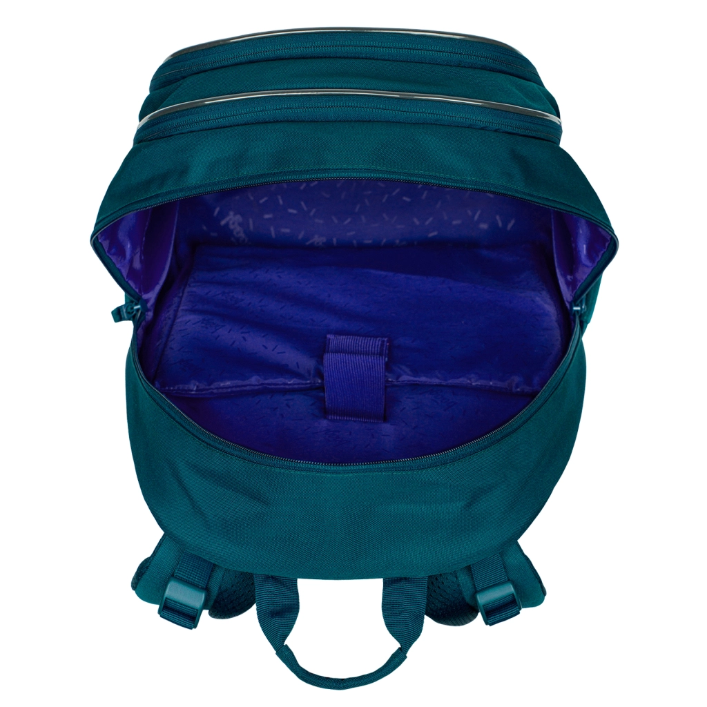 Anatomicky tvarovaný, priedušný chrbát a polstrované, nastaviteľné popruhy so sternálnym pásom zabezpečujú pohodlie a správne rozloženie záťaže po celý deň.