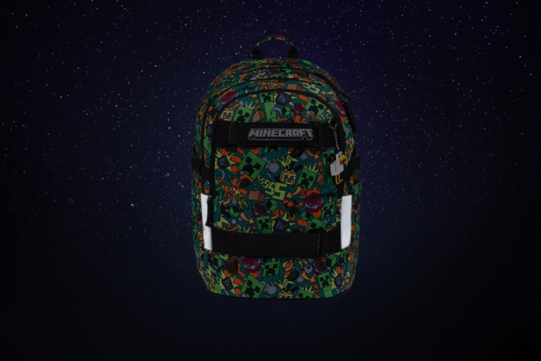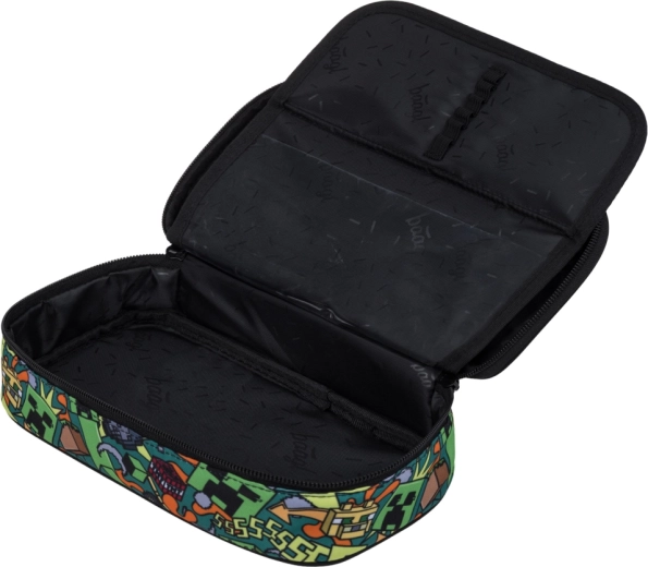 Peračník s dvojitou výklopnou chlopňou poskytuje prehľadné uloženie písacích potrieb, má vnútorné vrecko a okienko na rozvrh. Vrecko z pevného umývateľného materiálu sa sťahuje šnúrkami, ktoré umožňujú aj nosenie na chrbte. Celý set ladí v energickom hernom dizajne MINECRAFT Chaos a využíva odolné zipsy YKK a recyklované materiály.
