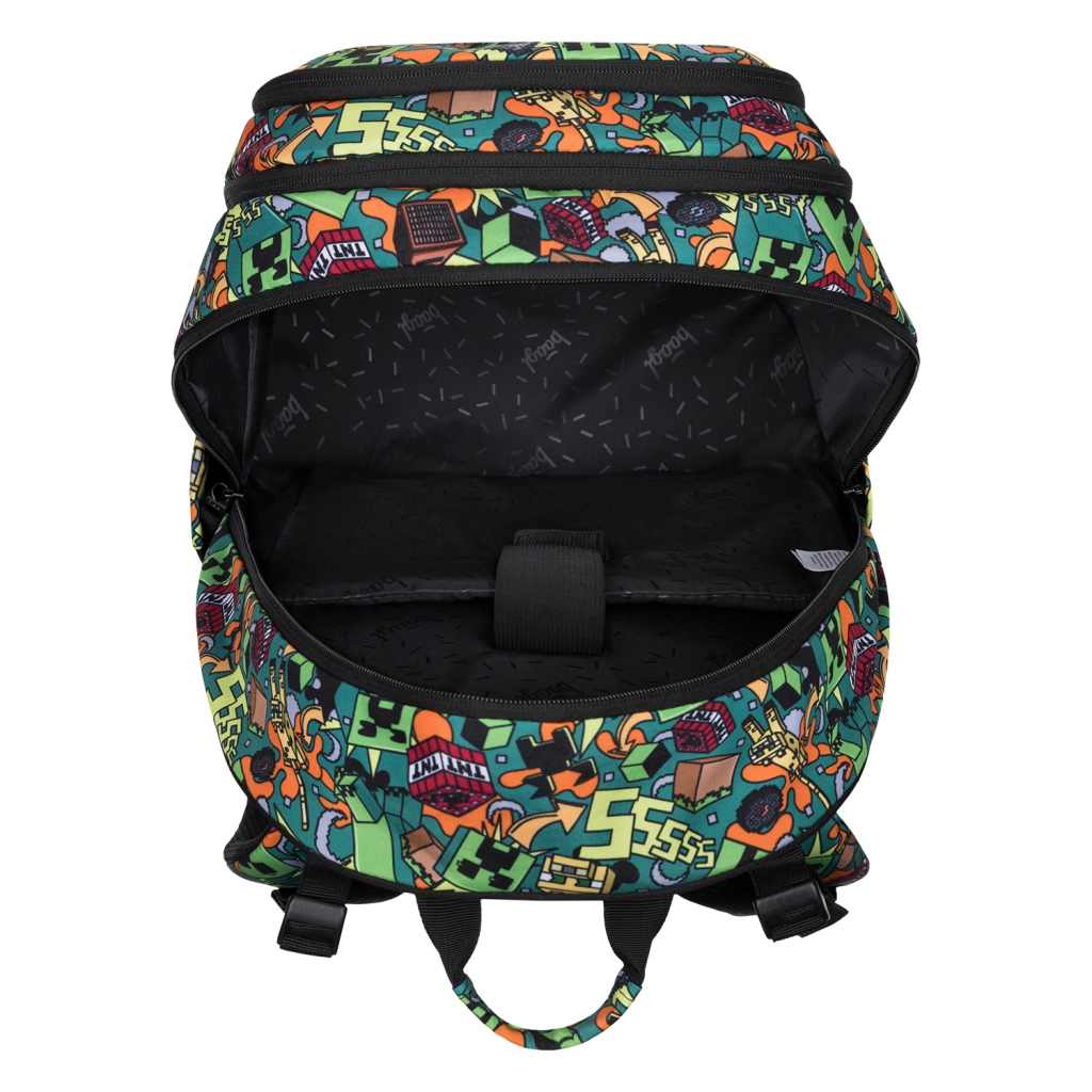 Školský set BAAGL Skate MINECRAFT Chaos je navrhnutý pre pohodlné každodenné nosenie od 3. triedy ZŠ. Batoh s hmotnosťou do 900 g ponúka tri komory, vnútorný organizér a polstrované vrecko na 15" notebook či tablet. Vďaka anatomicky tvarovanému chrbtu, plne nastaviteľným kompresným popruhom a reflexným prvkom je vhodný do školy aj na voľný čas.