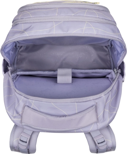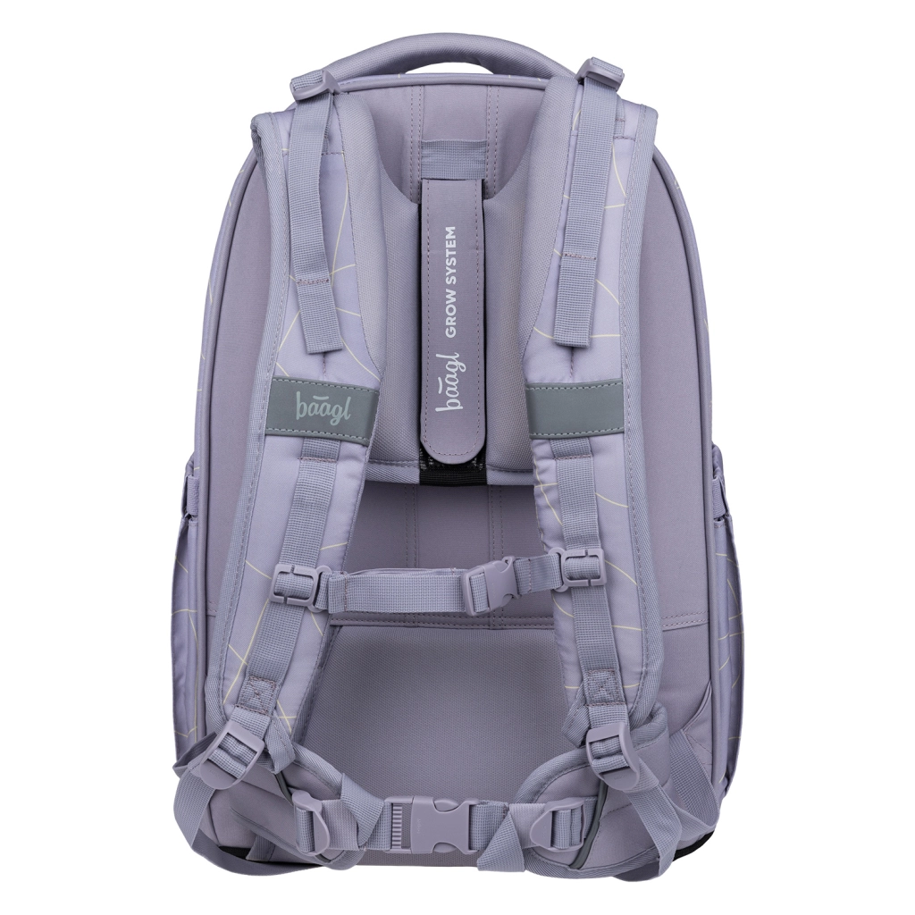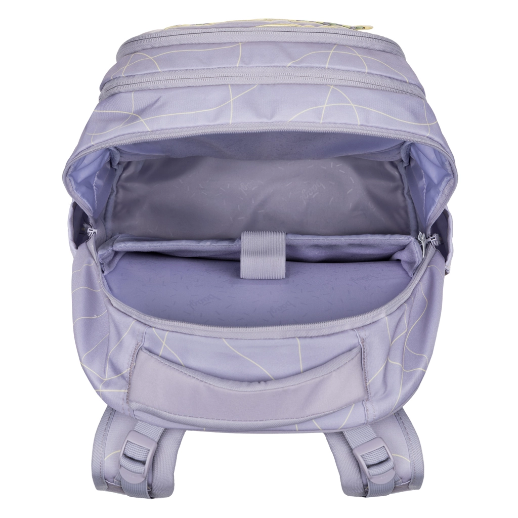 Trojkomorové usporiadanie poskytuje dokonalý prehľad: zamatové vrecko chráni notebook či tablet, bočné vrecká sú pripravené na fľaše BAAGL a obojsmerné zipsy YKK umožňujú rýchly prístup. Peračník s dvojitou výklopnou chlopňou má vnútorné vrecko a okienko na rozvrh, vrecko je umývateľné a vhodné na obuv či prevoz potrieb na krúžky. Ľadvinka a športová taška dopĺňajú set pre voľný čas aj tréningy.