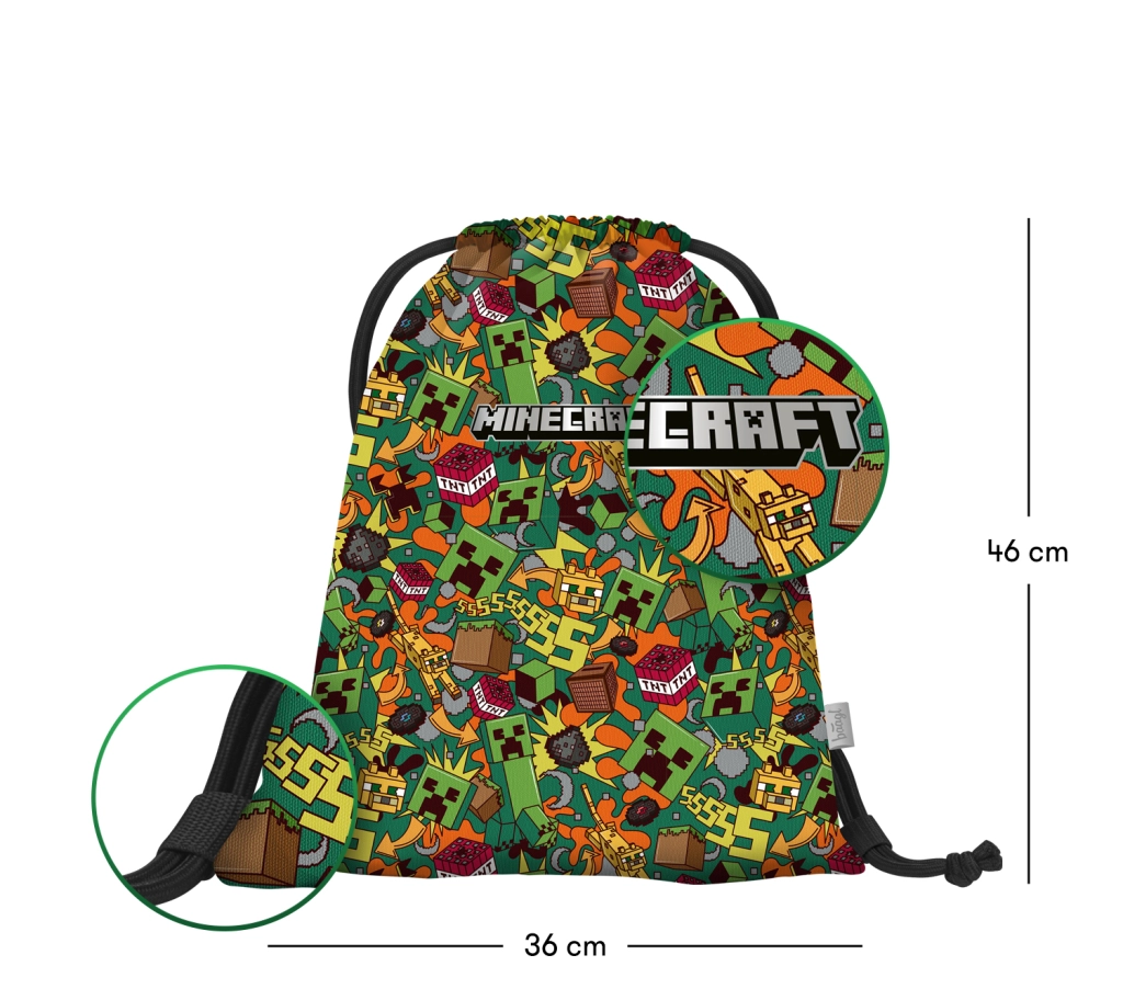 Vrecúško na obuv BAAGL MINECRAFT Chaos je skvelou voľbou do školy, na krúžky aj voľnočasové aktivity. Odolný a ľahko udržiavateľný materiál zaručuje dlhú životnosť, zatiaľ čo výrazný herný motív poteší všetkých fanúšikov sveta Minecraft.
