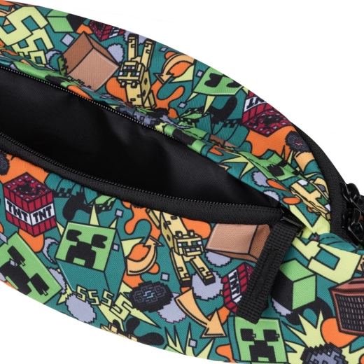 Štýlová ľadvinka BAAGL v populárnom dizajne MINECRAFT Chaos je praktický doplnok na každý deň. Ponúka obojstranný dvojcestný zips YKK, obojstranne nastaviteľné popruhy a pevnú pracku MEICO. Je vodoodolná, vyrobená z recyklovaného materiálu a pritom ultraľahká – váži len 100 g pri objeme 4,5 l.