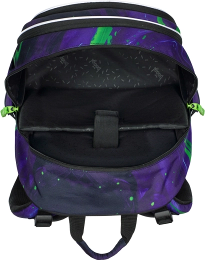 - Kompletná výbava – peračník s výklopnými chlopňami, vrecko s nosnými šnúrkami, praktická ľadvinka a obal na notebook.