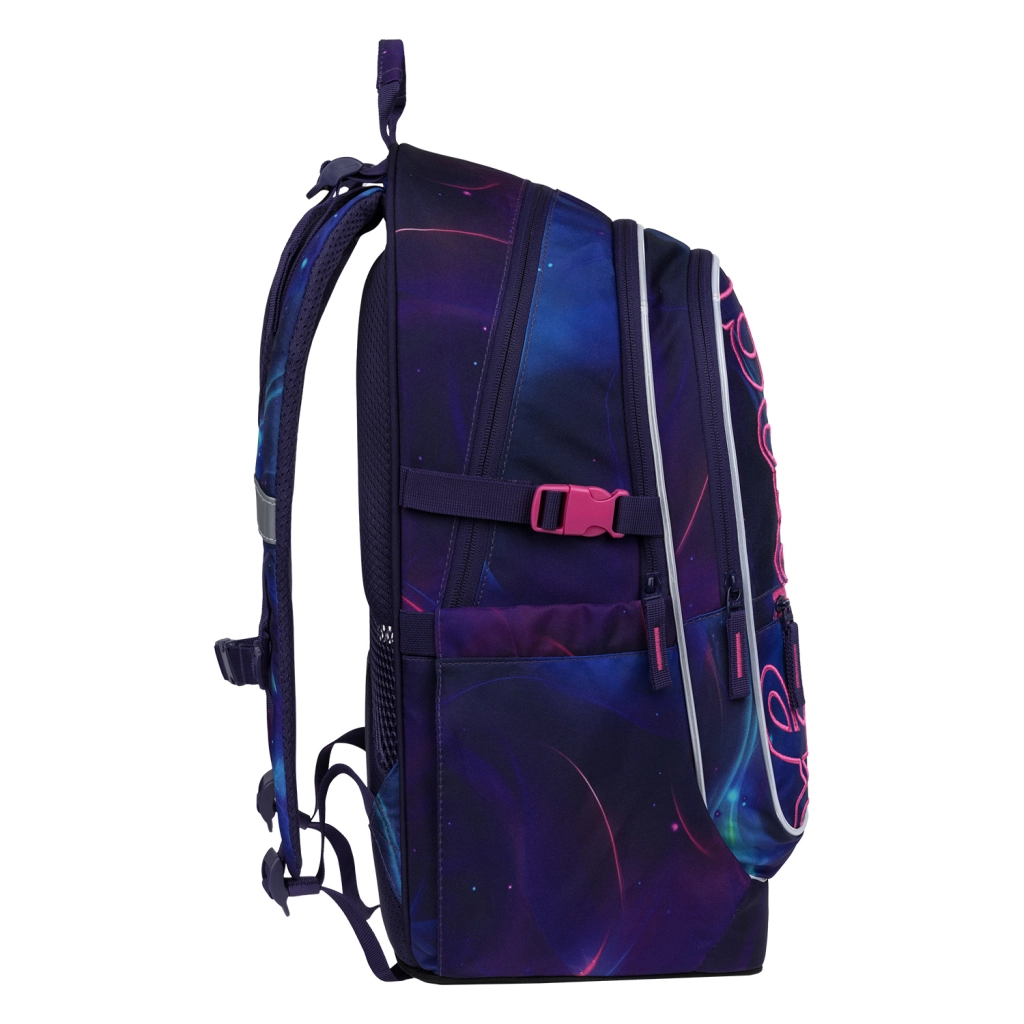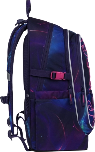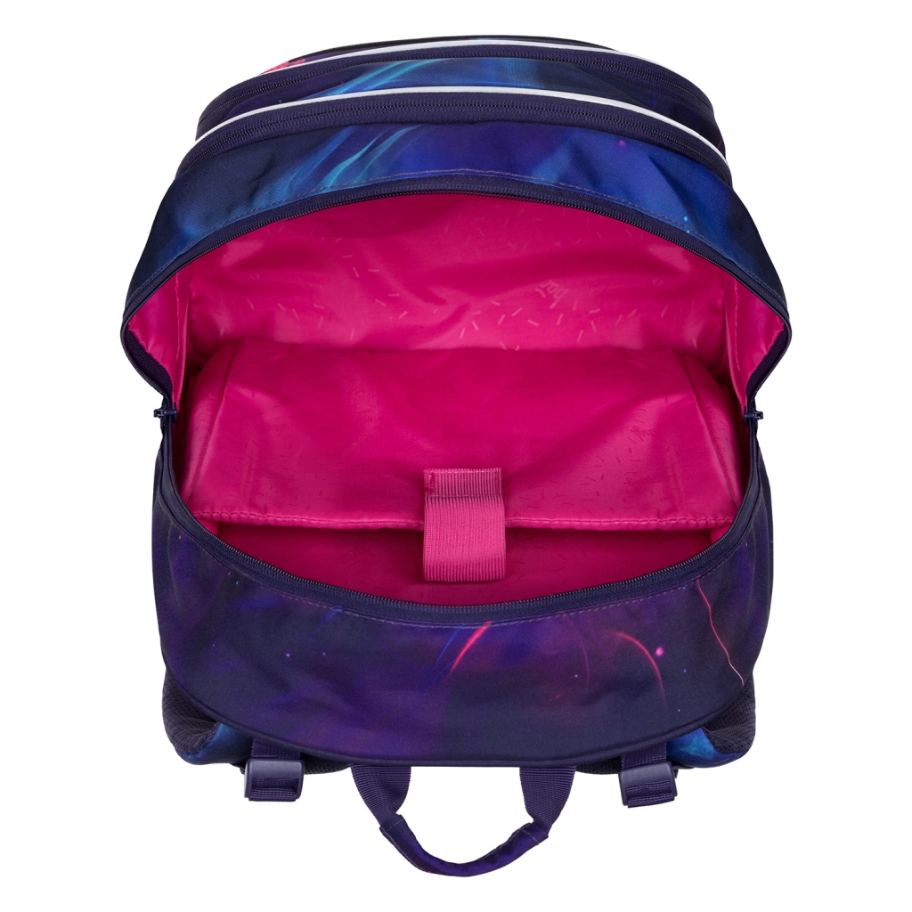 Kompletná školská výbava v jednom sete: ľahký batoh s objemom 25 l (cca 900 g) s trojkomorovým usporiadaním, vnútorným organizérom a termo vreckom na desiatu, k tomu priestranný peračník na zips s výklopnými chlopňami, šnúrové vrecko na telesnú výchovu či prezuvky, praktická ľadvinka na drobnosti a textilný obal/zakladač. Všetko v atraktívnom vesmírnom dizajne Nova, ktorý deti baví a zároveň je skvele vidieť vďaka reflexným prvkom.