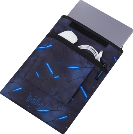 Vďaka možnosti výberu z mnohých motívov ľahko zladíte puzdro s ďalším vybavením BAAGL. Predné vrecko pojme nabíjačku, myš alebo káble, takže máte všetko prakticky po ruke. Materiál spĺňa Global Recycled Standard (GRS), čo potvrdzuje jeho šetrnosť k prírode aj zodpovednú výrobu.