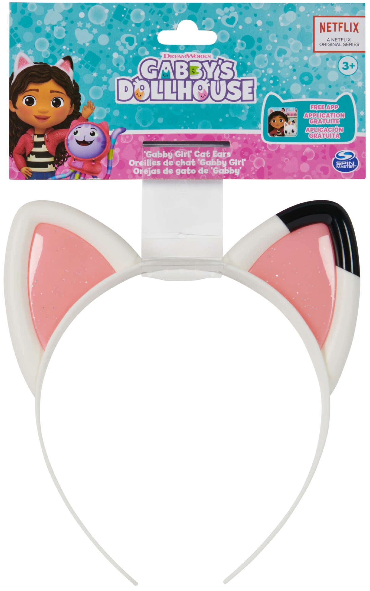 Vstúpte do sveta fantázie s čelenkou s mačacími uškami z obľúbeného seriálu GABBY’S DOLLHOUSE. Biela plastová čelenka s ružovými trblietavými detailmi presne kopíruje vzhľad ušiek, ktoré nosí Gabi, a podporí kreatívnu hru, kostýmy aj každodenné skrášlenie účesu.