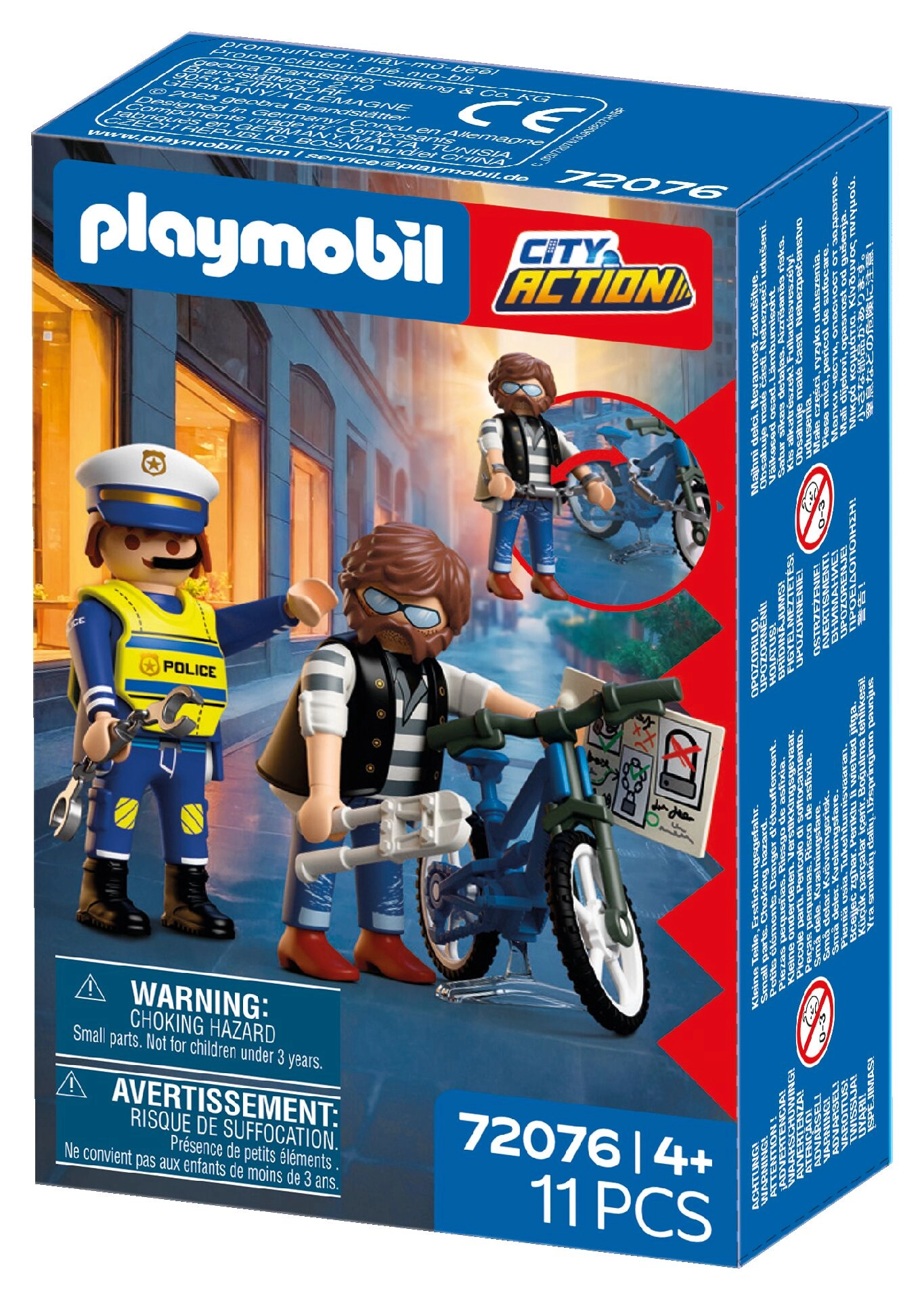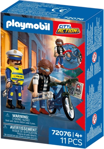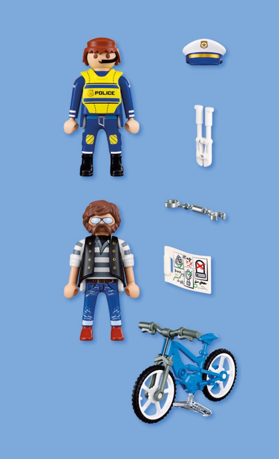 Set Playmobil City Action – Krádež bicykla prináša napätie priamo do detskej izby. Dve detailne spracované figúrky – policajt a zločinec – a bohaté doplnky umožnia deťom vymýšľať vlastné príbehy plné prenasledovania, zadržania a dômyselných manévrov. Ideálne ako samostatná hra aj ako rozšírenie ďalších sád PLAYMOBIL.