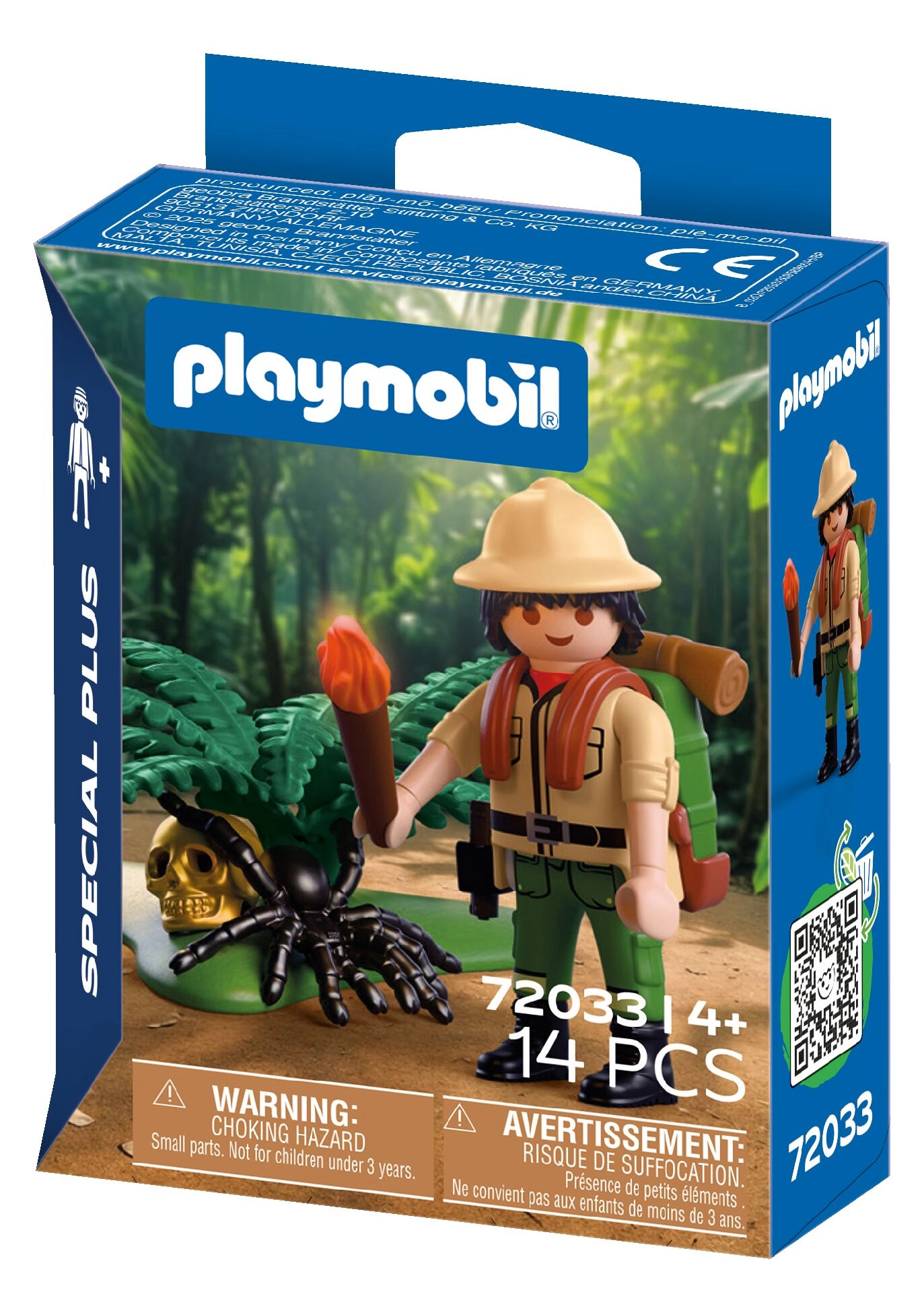 Objavujte džungľu s figúrkou PLAYMOBIL Special Plus a bohatou výbavou. Sada obsahuje pohyblivú postavičku dobrodruha, odnímateľný batoh, pochodeň, zlatú lebku, pavúka a ďalšie prvky na kreatívne hranie a rozvoj fantázie.