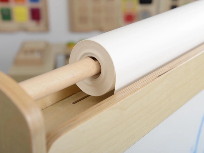 Táto kvalitná drevená maliarska tabuľa s čírym akrylovým oknom podporuje fantáziu, jemnú motoriku aj spoluprácu detí. Maľovať možno priamo na priehľadný panel alebo na papier z hornej rolky – deti si tak vyskúšajú rôzne techniky a efekty. Umývateľný akryl sa ľahko čistí, takže nový obrázok môže začať počas chvíľky.