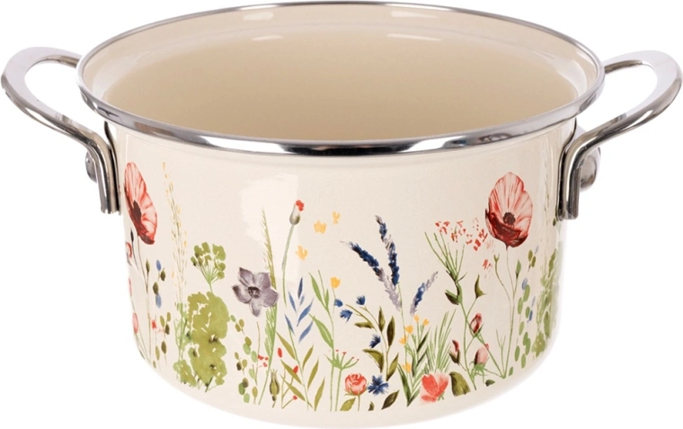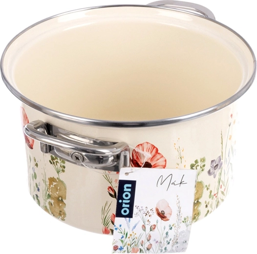 Elegantný smaltovaný hrniec s objemom 3 l v krémovej farbe s motívom poľných kvetov je ideálny na každodenné varenie aj dusenie. Vďaka nerezovým okrajom a pevným kovovým úchytom sa s ním pohodlne manipuluje. Vhodný na všetky typy sporákov vrátane indukcie aj do rúry a možno ho umývať v umývačke. Tradičný vzhľad v retro štýle a zdravotne nezávadná smaltovaná oceľ od českej značky ORION.