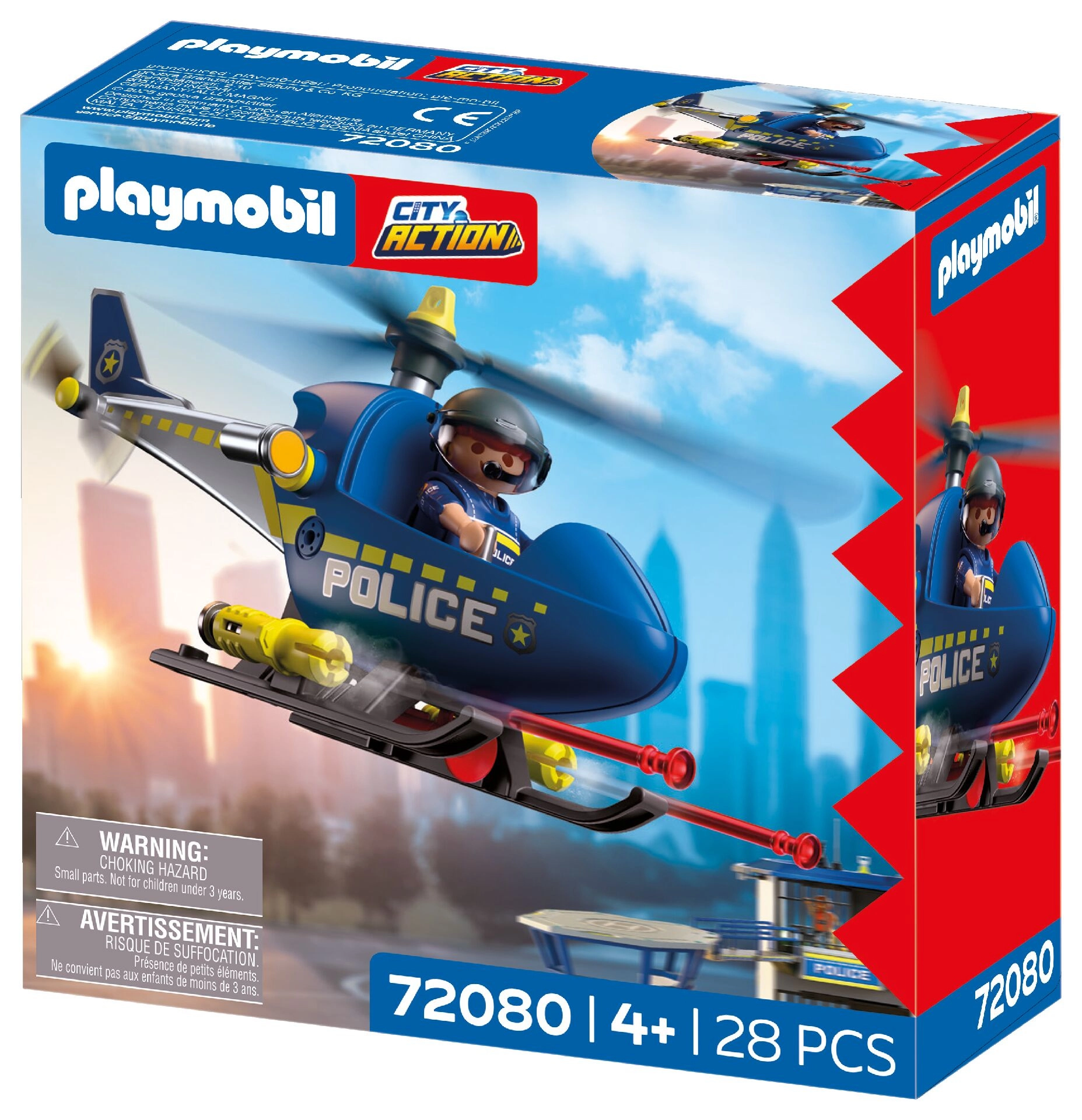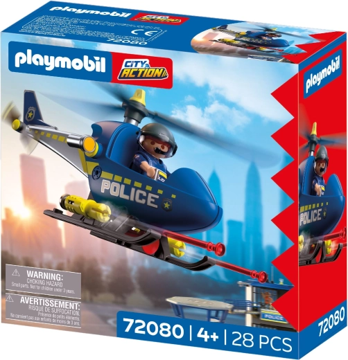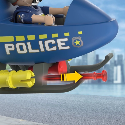 Sada PLAYMOBIL City Action prináša dynamickú akciu do detskej izby. Vrtuľník s rotujúcimi rotormi umožňuje plynulé manévre, zatiaľ čo policajt kontroluje oblasť, hlási cez megafón a vykonáva bezpečné varovné výstrely. Deti si ľahko vytvoria vlastné príbehy plné napätia a dobrodružstva.