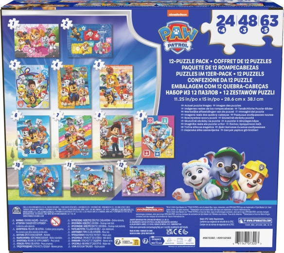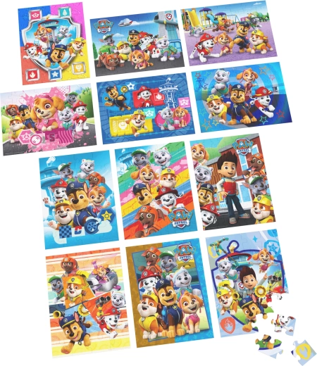 Táto farebná sada puzzle od značky Spin Master je inšpirovaná obľúbeným seriálom PAW PATROL. Deti si môžu poskladať obrázky so šteniatkami Marshall, Rubble, Chase, Rocky, Zuma, Skye a ich kamarátmi. Každý hotový obrázok má rozmery 38,1 × 28,5 cm, takže vynikne na každom detskom stolíku.