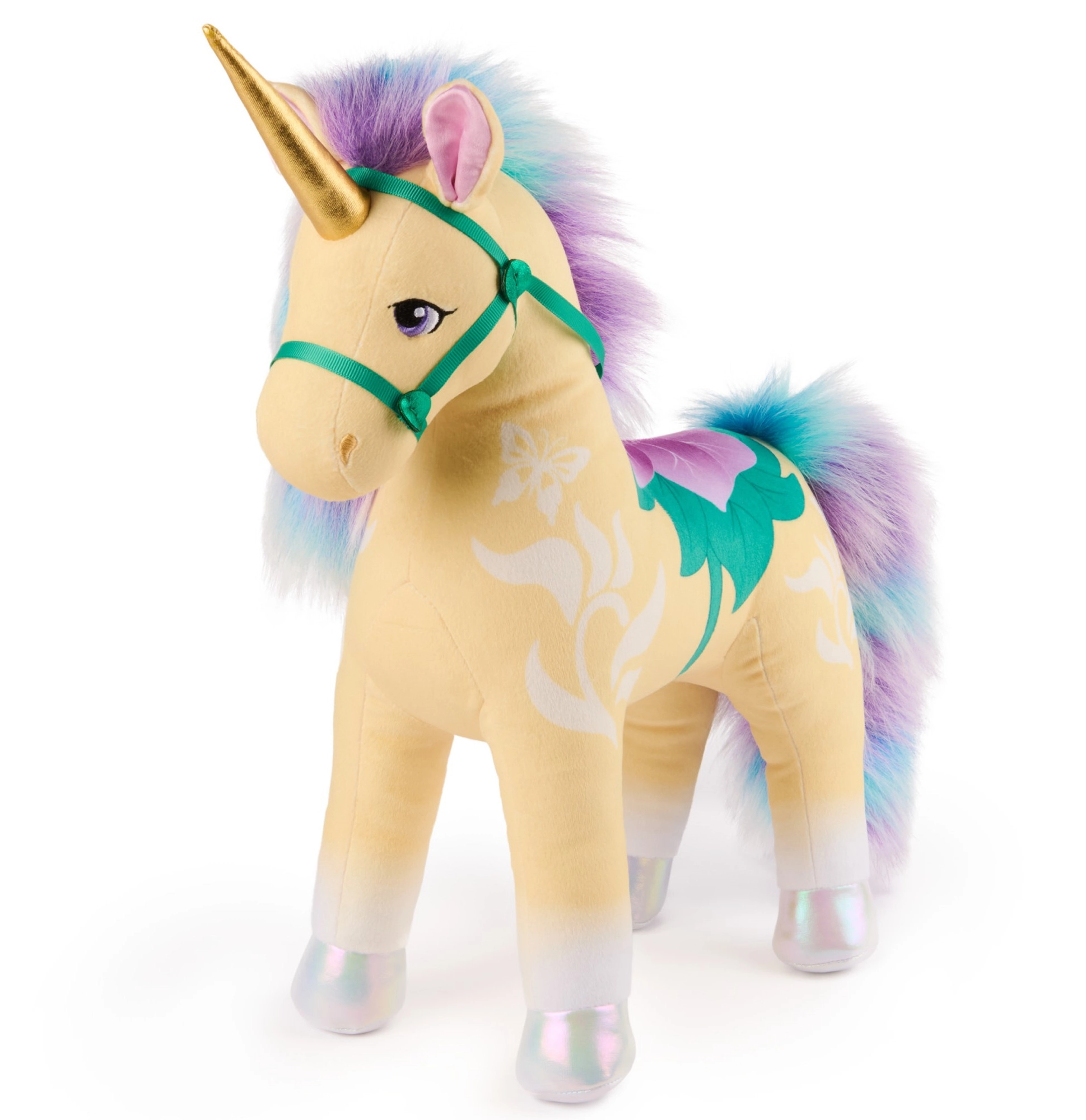 Objavte čarovný svet Unicorn Academy s mäkučkým spoločníkom – plyšovým jednorožcom Leaf s výškou 38 cm od značky Spin Master. Má zlatý trblietavý roh, opálové kopytá a bohatú hrivu a chvost v odtieňoch tyrkysovej a fialovej. Jemný, hebký plyš, výrazné fialové oči a botanické sedlo s uzdou z neho robia ideálnu hračku na mojkanie, kreatívnu hru aj štýlovú dekoráciu detskej izby.