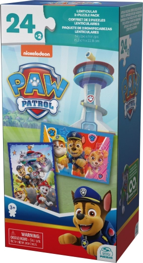 Objavte čaro obľúbeného seriálu PAW PATROL v puzzle sade s 2 odlišnými motívmi. Jeden zobrazuje Chasea, Marshalla, Skye, Rubblea a Everest pri pozorovacej veži, druhý zas farebné pozadie s Rubblem, Chaseom a Skye. Lentikulárny 3D efekt dodáva obrázkom hĺbku a robí skladanie ešte zábavnejším.