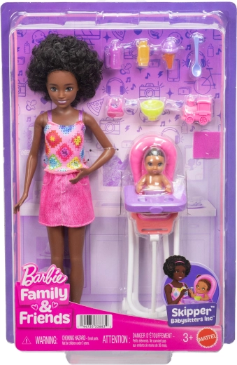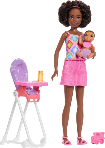 Objavte herný set BARBIE Skipper Opatrovateľka s roztomilým bábätkom a funkčnou jedálenskou stoličkou. Deti si užijú realistické opatrovateľské a kŕmiace scény vďaka bohatým doplnkom – fľaštičke, mištičke, lyžičke, podbradníku aj hračke vláčiku. Bábika má pohyblivé končatiny a moderný outfit, ktorý podporuje kreatívne rozprávanie príbehov už od 3 rokov.