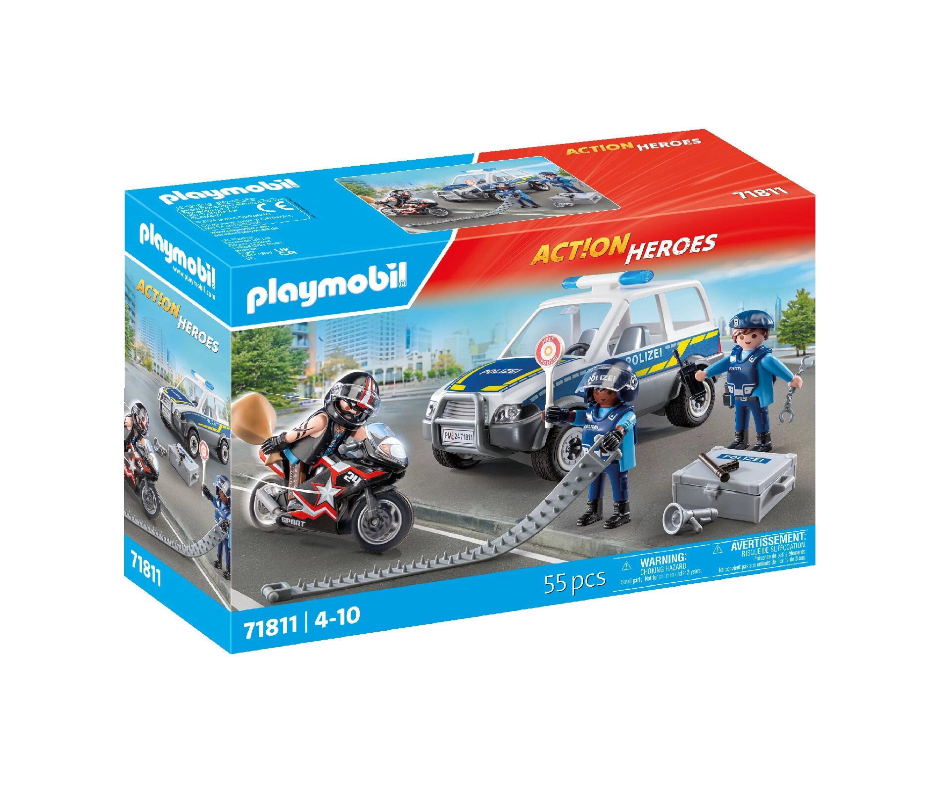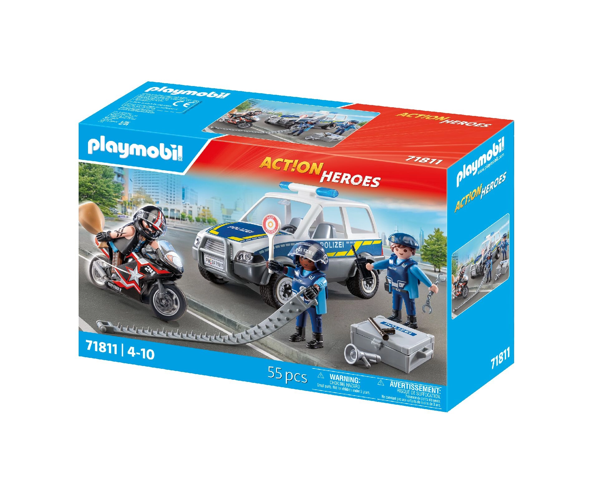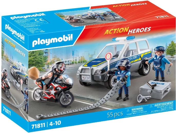 Akčná stavebnica PLAYMOBIL City Heroes prináša napínavú policajnú naháňačku so služobným motocyklom, autom zlodeja a tromi pohyblivými figúrkami. Deti si užijú realistické detaily, množstvo doplnkov a tvorenie vlastných príbehov, ktoré rozvíjajú fantáziu, koordináciu aj logické myslenie.