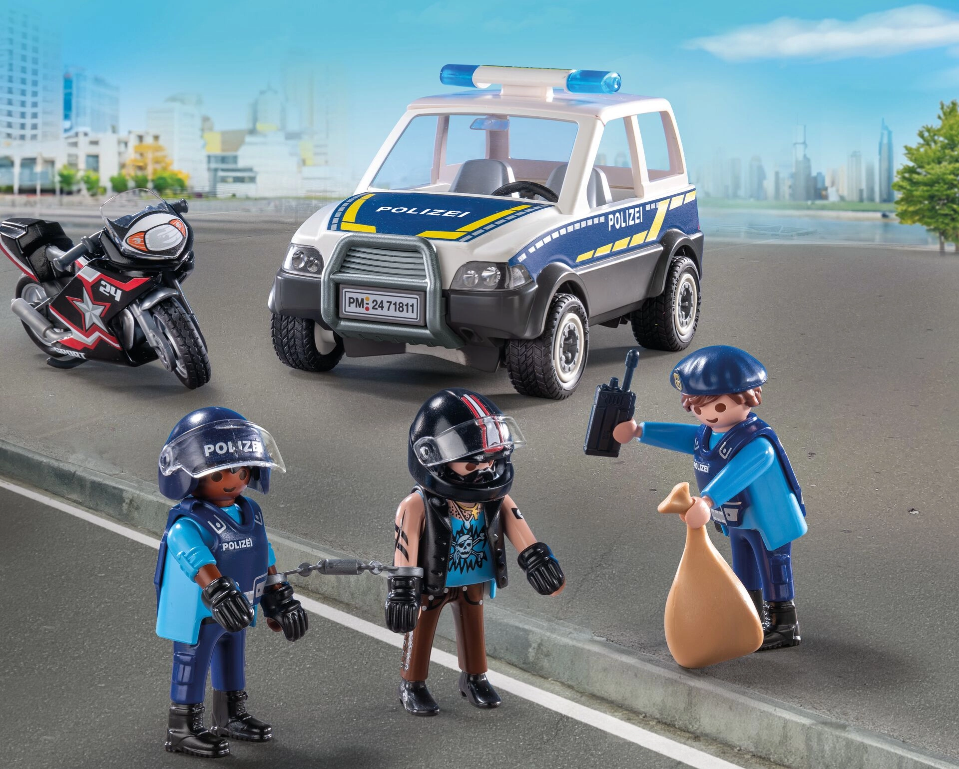 Vdýchnite detskej fantázii život s dynamickou sadou PLAYMOBIL City Heroes – Policajná naháňačka. Odvážny policajt sa púšťa do akcie, aby dopadol zlodeja utekajúceho na motorke, zatiaľ čo zločinec uniká v parádnom aute. Realistické vozidlá, precízne spracovanie a pohyblivé figúrky zaručujú pohlcujúci zážitok pri každej hre.