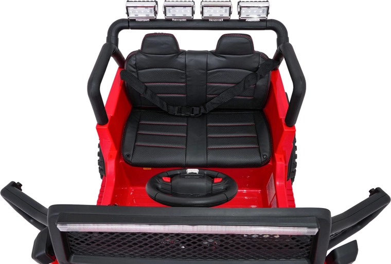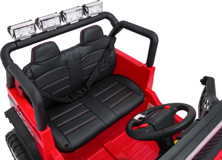 Tento robustný detský jeep BEAST 4x4 v červenej farbe je stvorený pre malých dobrodruhov. Štyri motory 45 W zabezpečujú dostatok sily aj mimo spevnených ciest, zatiaľ čo dvojitý akumulátor 2× 12 V 7 Ah predĺži výlety na maximum. Mäkké EVA kolesá, pruženie vpredu aj vzadu a plynulý štart sa postarajú o pohodlnú a bezpečnú jazdu.