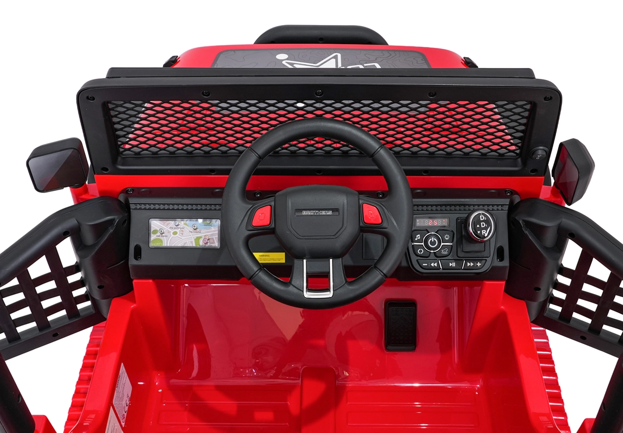 Silné a štýlové detské terénne vozidlo pre dve deti s pohonom 4x45 W, dvojitou batériou 2× 12 V 7 Ah, mäkkými EVA kolesami a luxusným sedadlom z ekokože. Ponúka plynulý rozjazd, dve rýchlosti, bohaté LED osvetlenie, otváracie dvere a moderný audio panel s Bluetooth, USB, MP3 a FM rádiom. Nosnosť až 50 kg a veľká svetlá výška 23 cm pre skutočné dobrodružstvo.